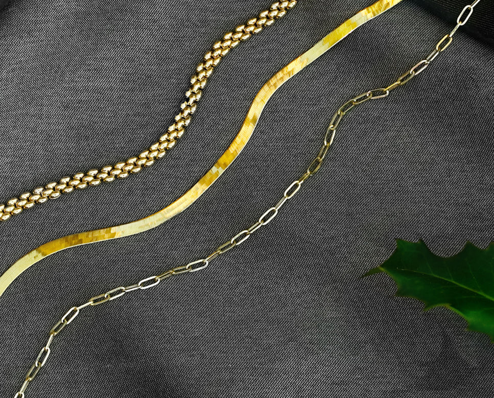 Soleil Collection 16'' Herringbone Necklace | 9K Solid Yellow Gold
