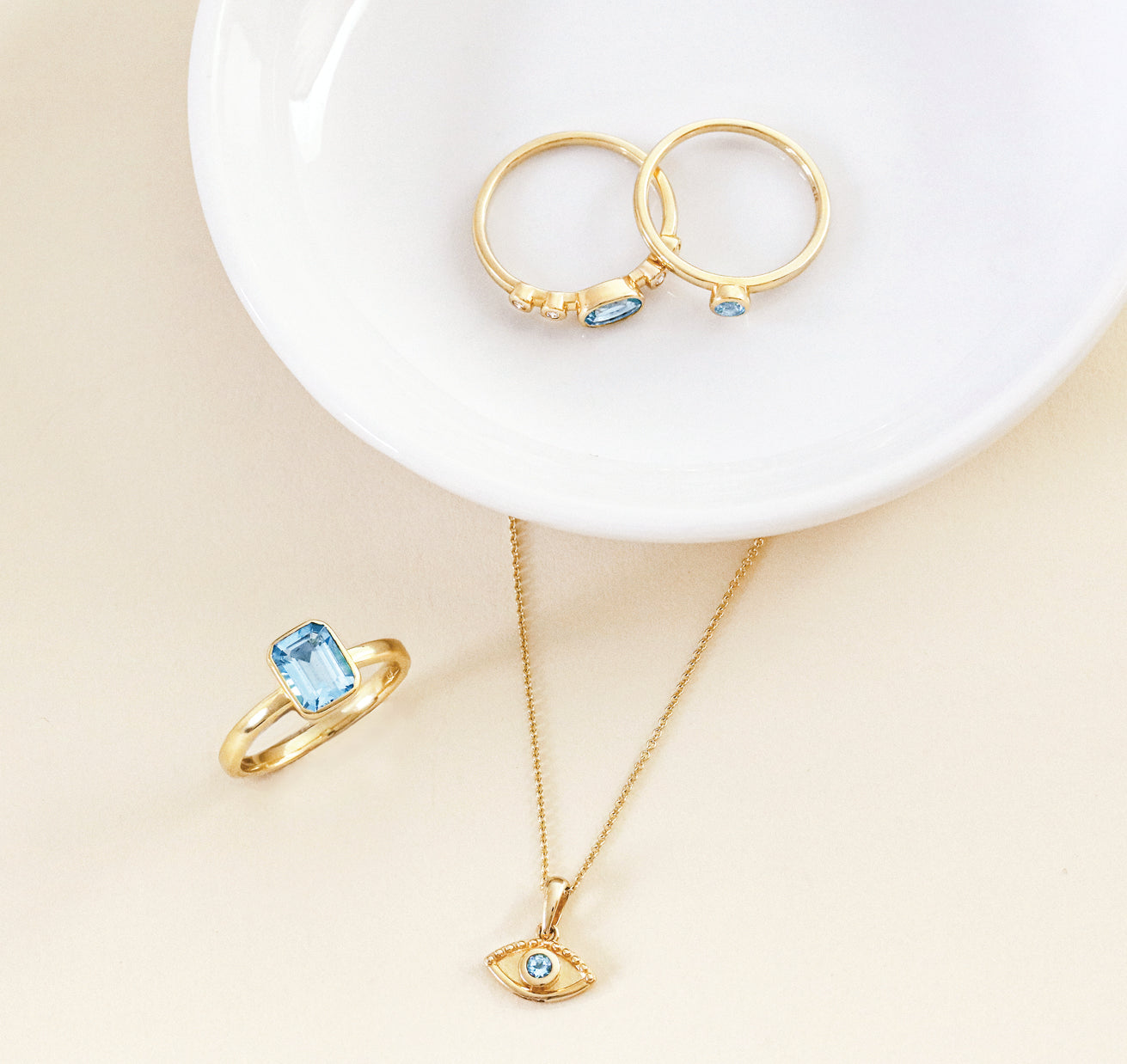 The birthstone for March is aquamarine, a stone known for its connection to the sea and ethereal blue colour. Historically, early sailors believed that aquamarine talismans would protect them when out to sea. In the last few years we have seen an increase in the stones popularit, this is as aquamarine is highly sought after due to blue stones occurring less frequently in nature.