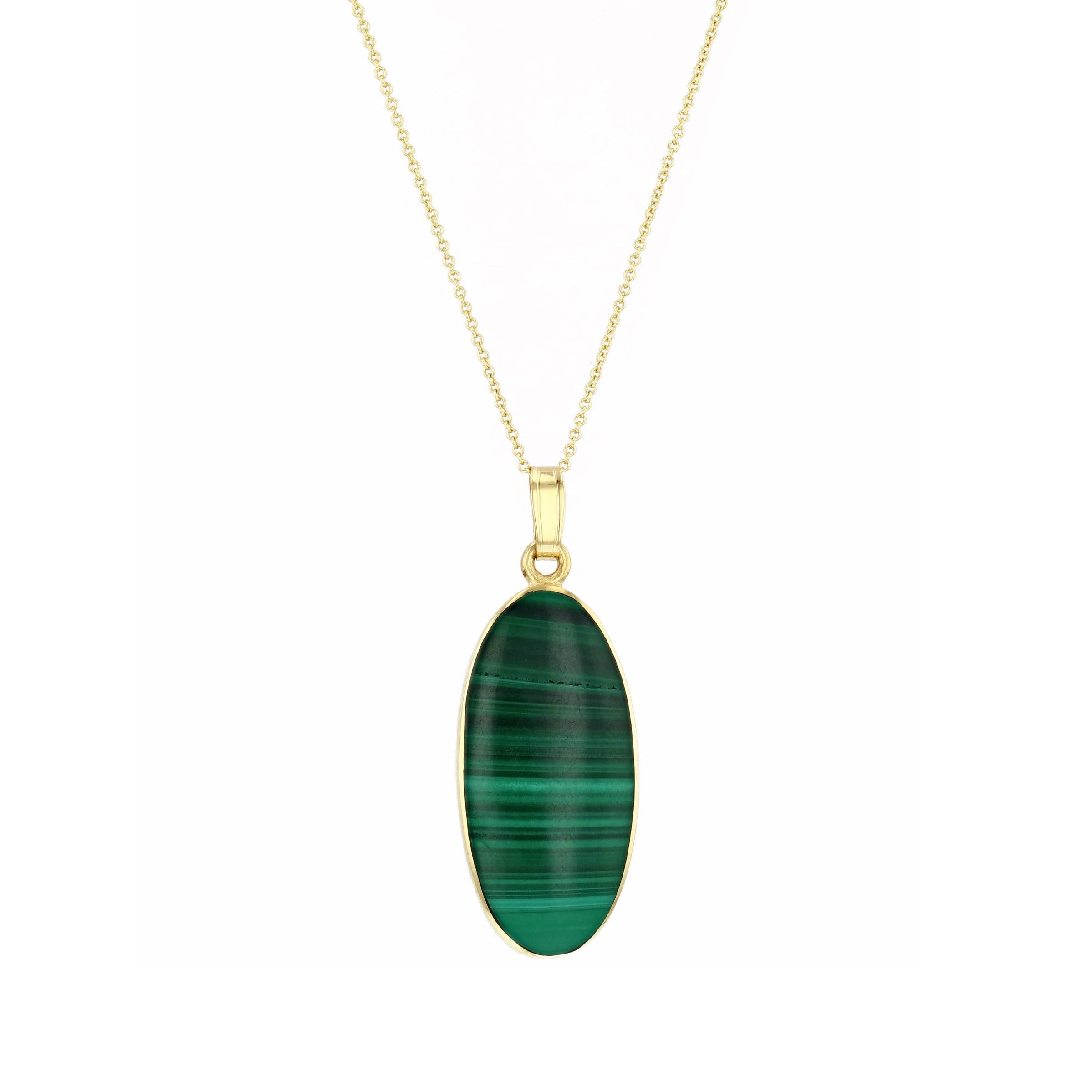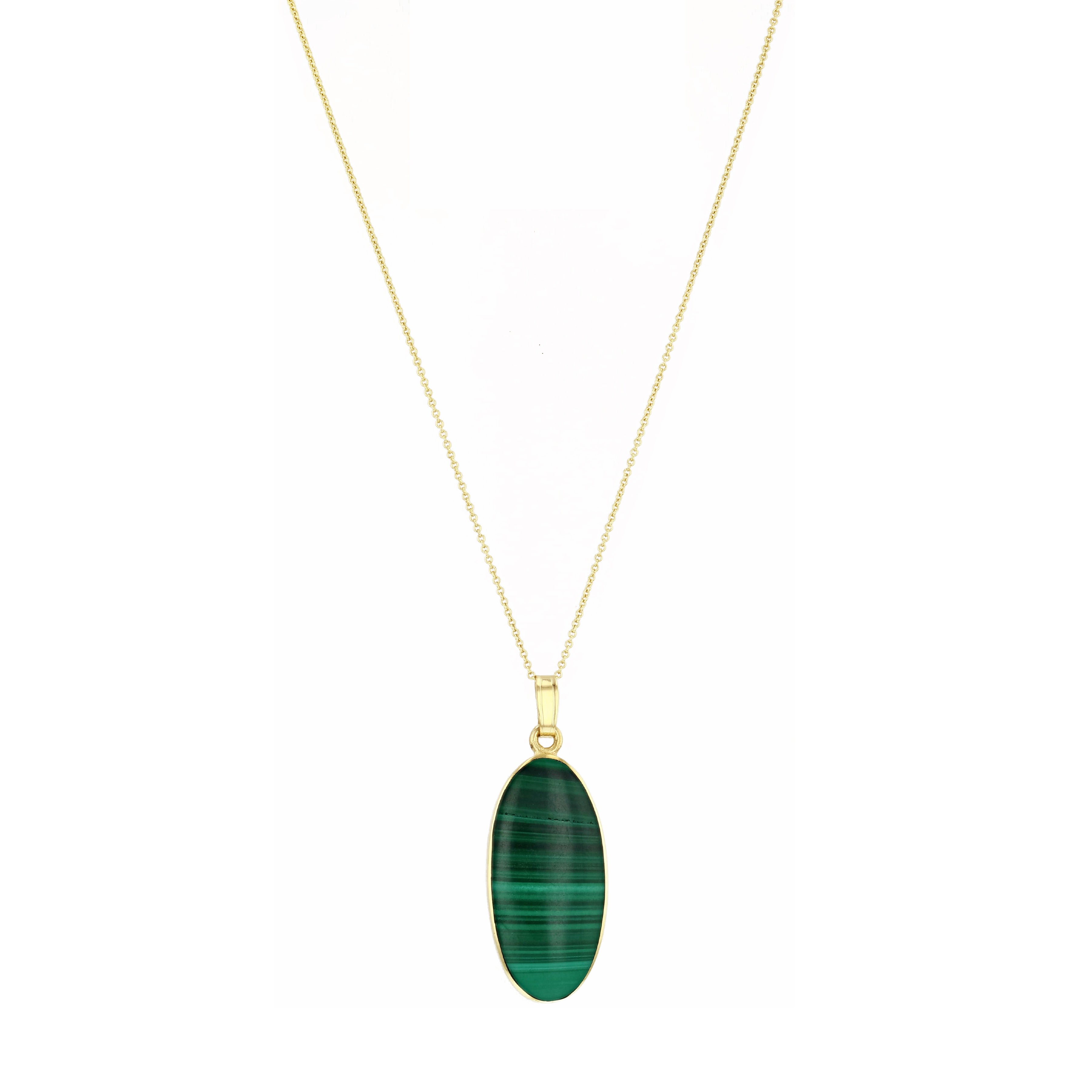 Elongated Oval Malachite Necklace (Chain Not Included) | Pre-Loved | 9K Yellow Gold