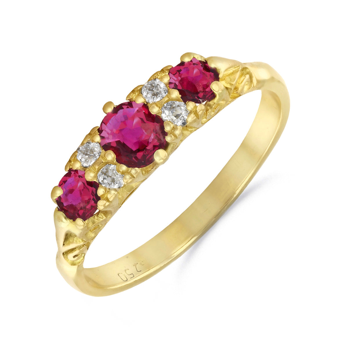 Vintage Ruby & Diamond Dress Ring | Pre-Loved | 18K Yellow Gold