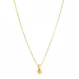 At the centre of the pendant, brilliant-cut diamonds in G/H colour and SI clarity add a subtle sparkle, with a total carat weight of 0.03ct. The polished finish enhances the warm glow of the gold, while a secure spring ring clasp ensures comfortable, effortless wear.