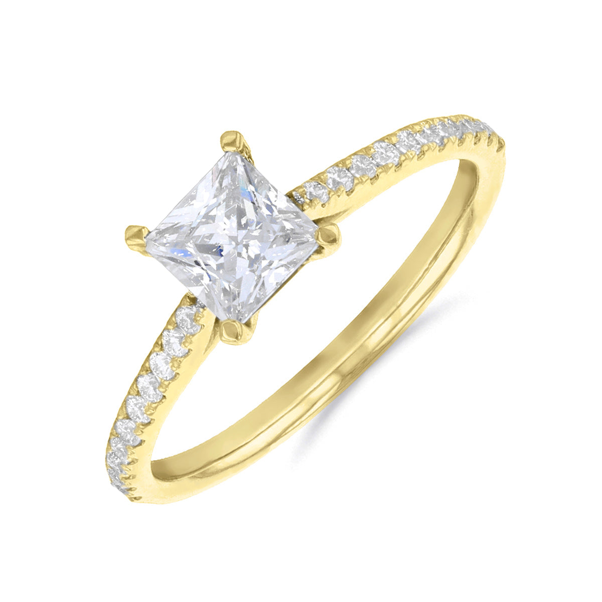0.35ct Ophelia Shoulder Set Princess Cut Diamond Solitaire Engagement Ring | 18ct Yellow Gold