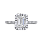 Our Willow Halo engagement ring is an interpretation of the most perfect, enchanting halo setting. A classically romantic design showcasing a dazzling 0.50ct emerald cut diamond held in a classic 4 claw, 18ct white gold setting accentuated by a bright scintillianting halo of diamonds. The feature shoulders are further set with a 0.31ct of diamonds. This is a truly breathtaking engagement ring and would be perfect for your loved one.