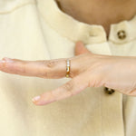 This ring is currently a size L 1/2, and can be sized up and down by 3 sizes free of charge.