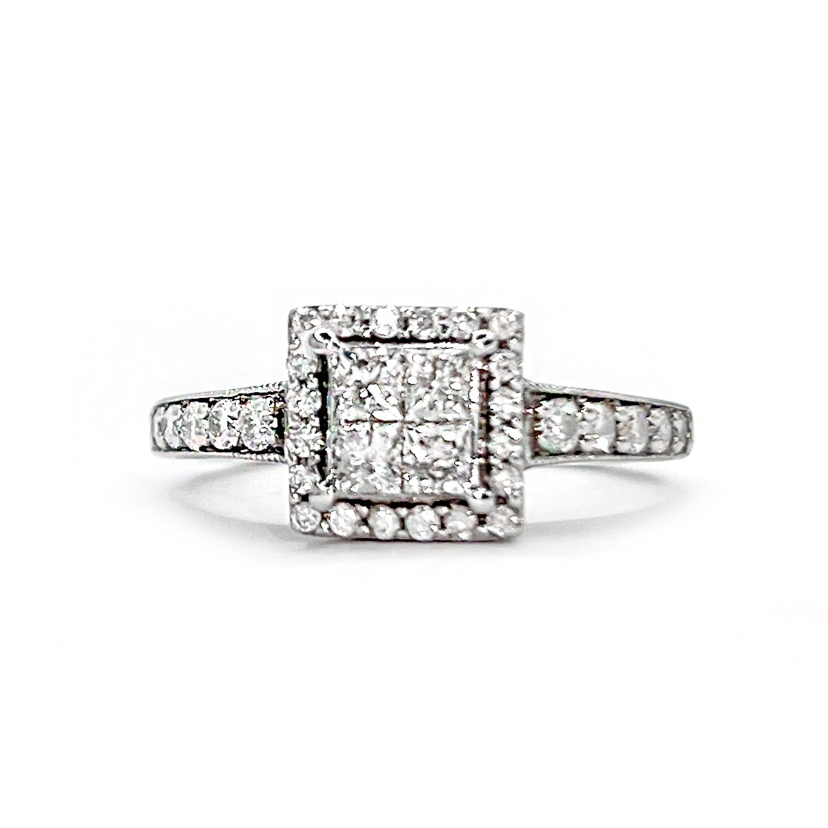 0.73ct Princess Cut Diamond Cluster Ring | Pre-Loved | 18K White Gold