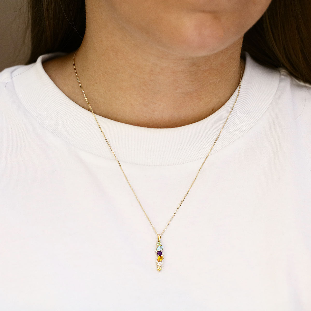 Bring a splash of colour and sparkle to your jewellery collection with this elegant straight-drop pendant. A vibrant arrangement of round and oval-cut gemstones, including soft blush morganite (0.11ct), golden citrine (0.21ct total), rich amethyst (0.10ct), cool blue topaz (0.22ct), and fresh peridot (0.07ct) - are beautifully balanced to create a rainbow of light and colour.