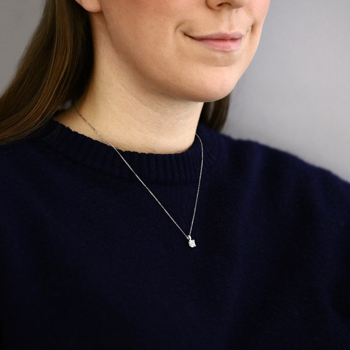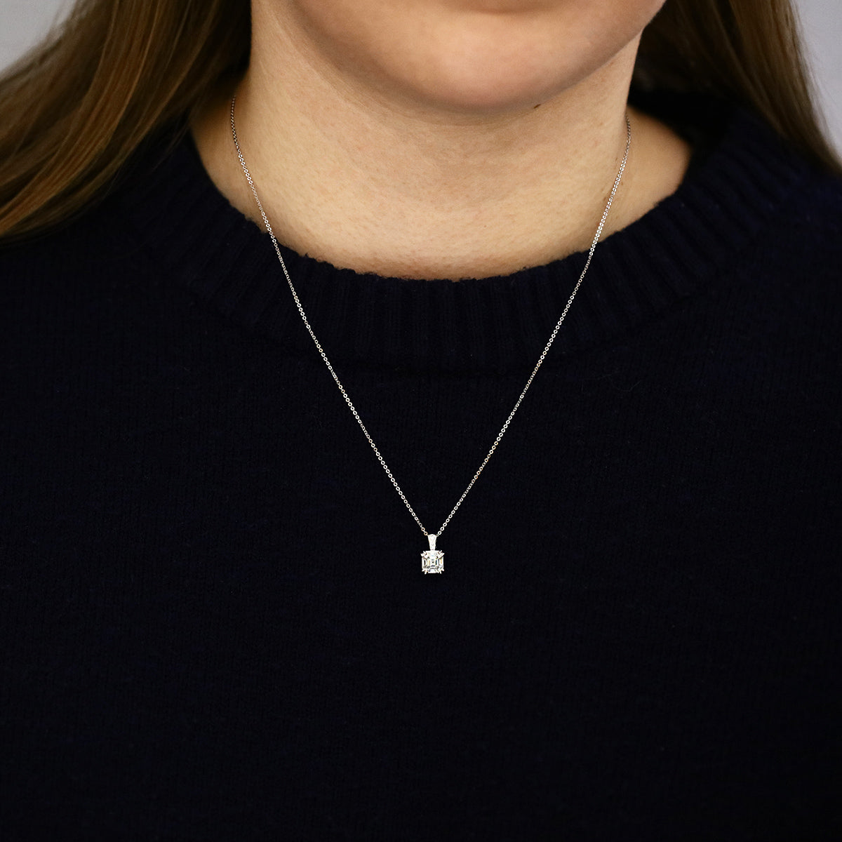 0.90ct Asscher Cut Diamond Solitaire Necklace | Pre-Loved | 18K White Gold