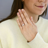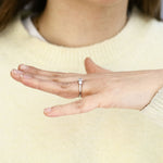 The refined shank tapers gently from approximately 1.8mm to 2.1mm, giving the ring a delicate profile while remaining comfortable and wearable for everyday elegance.