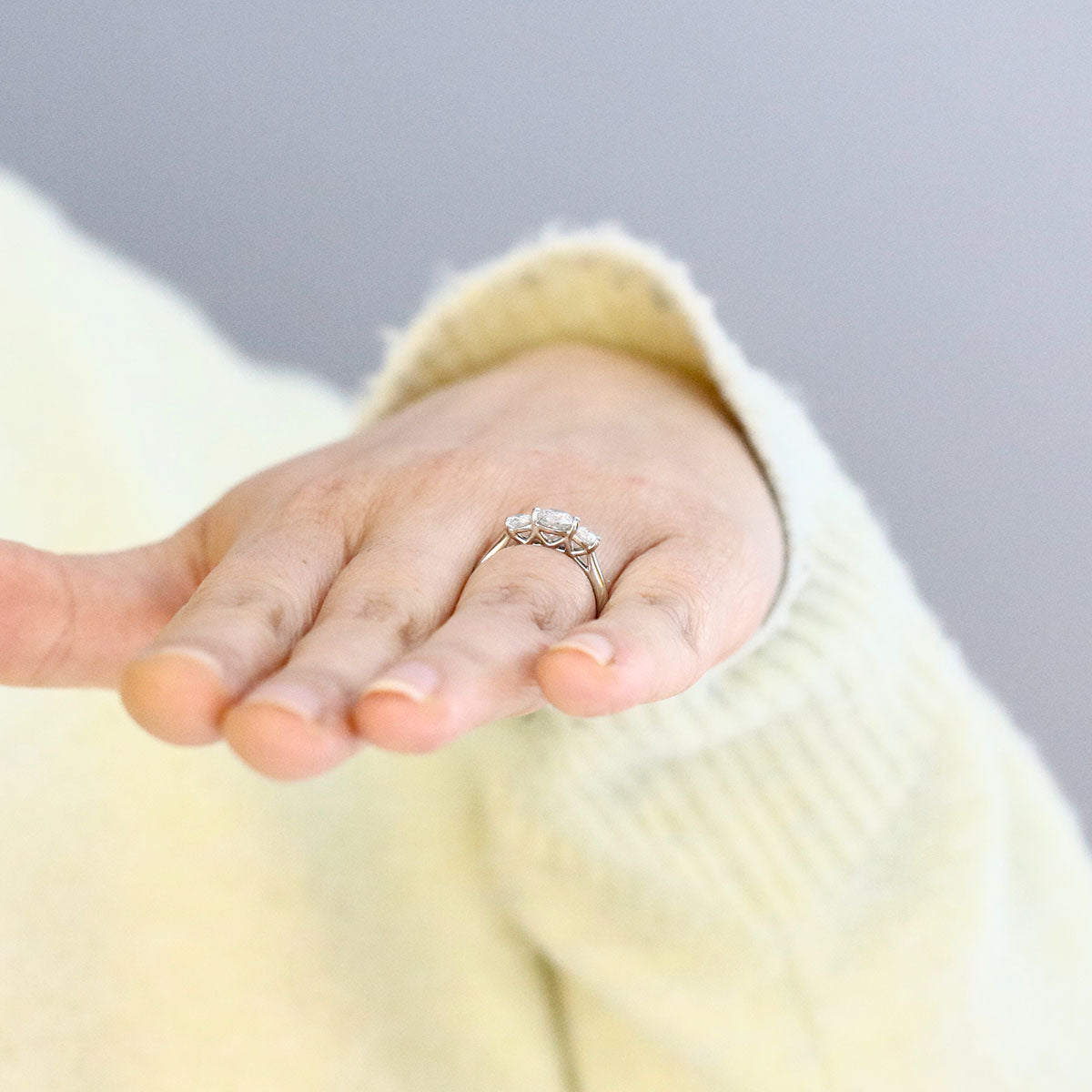 This elegant 0.90ct diamond three-stone ring is a beautiful pre-loved piece with a clean, modern design that feels timeless yet contemporary.