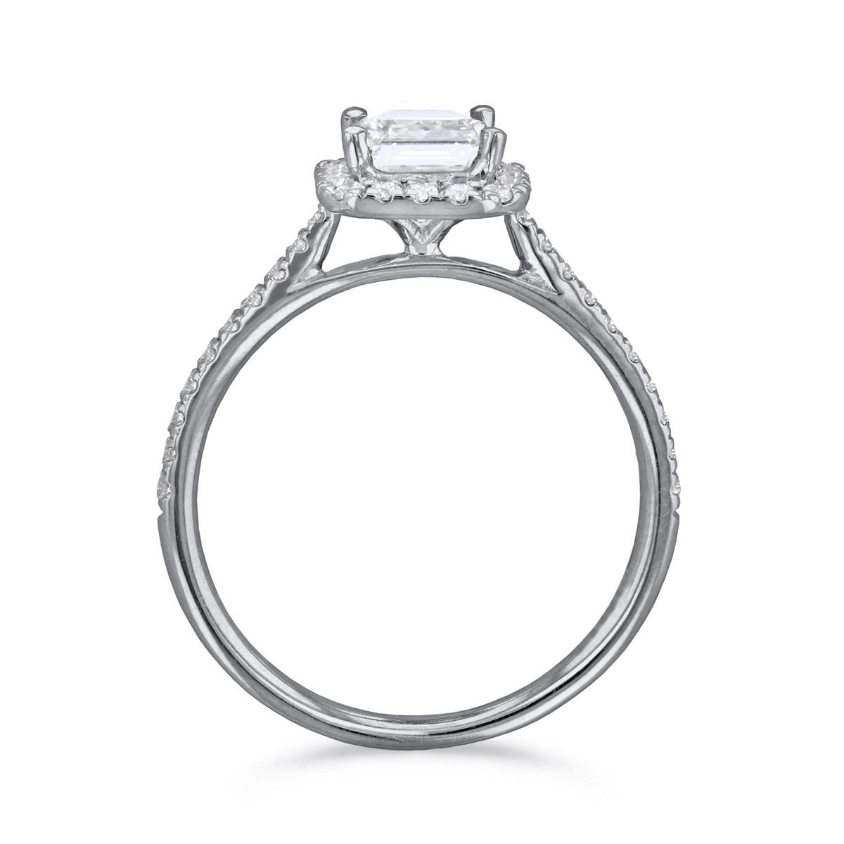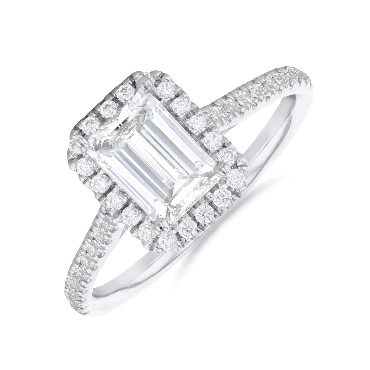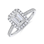 Our Willow Halo engagement ring is an interpretation of the most perfect, enchanting halo setting. A classically romantic design showcasing a dazzling 1.50ct emerald cut diamond held in a classic 4 claw, 18ct white gold setting accentuated by a bright scintillianting halo of diamonds. The feature shoulders are further set with a 0.31ct of diamonds. This is a truly breathtaking engagement ring and would be perfect for your loved one.