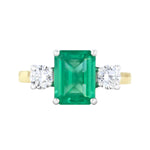 Heirloom Collection 1.57ct Emerald-Cut Emerald and 0.50ct Diamond Three Stone Ring | Platinum & 18K Yellow Gold