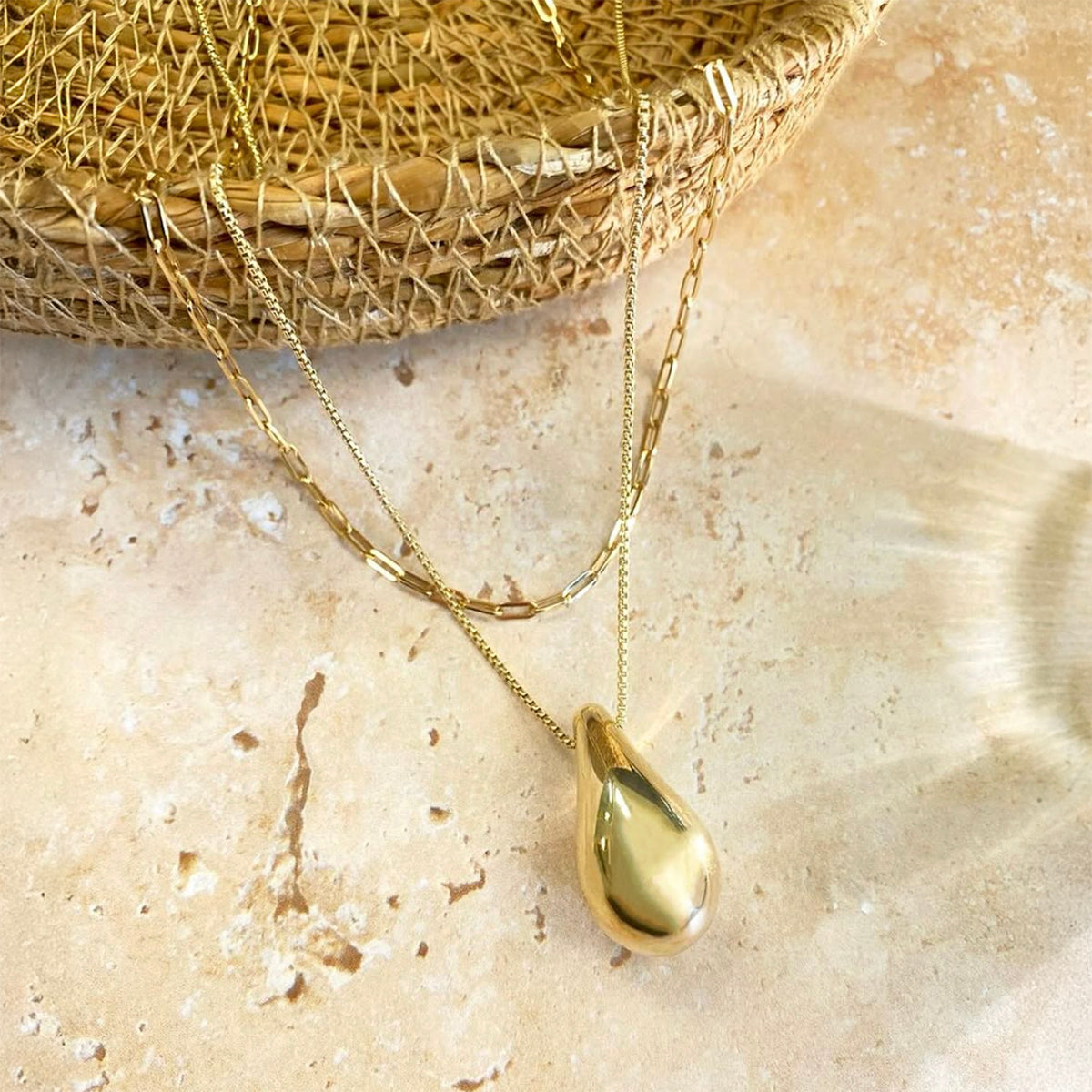 Soleil Collection 18" Large Teardrop Pendant | 9K Yellow Gold