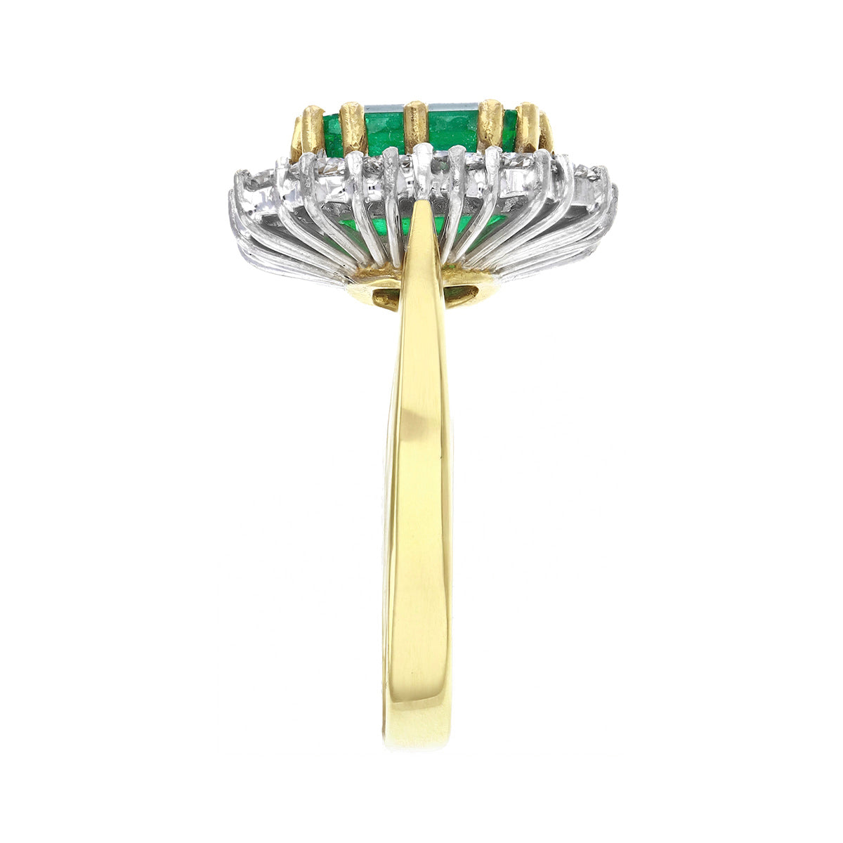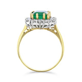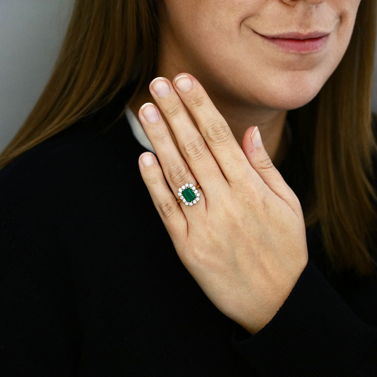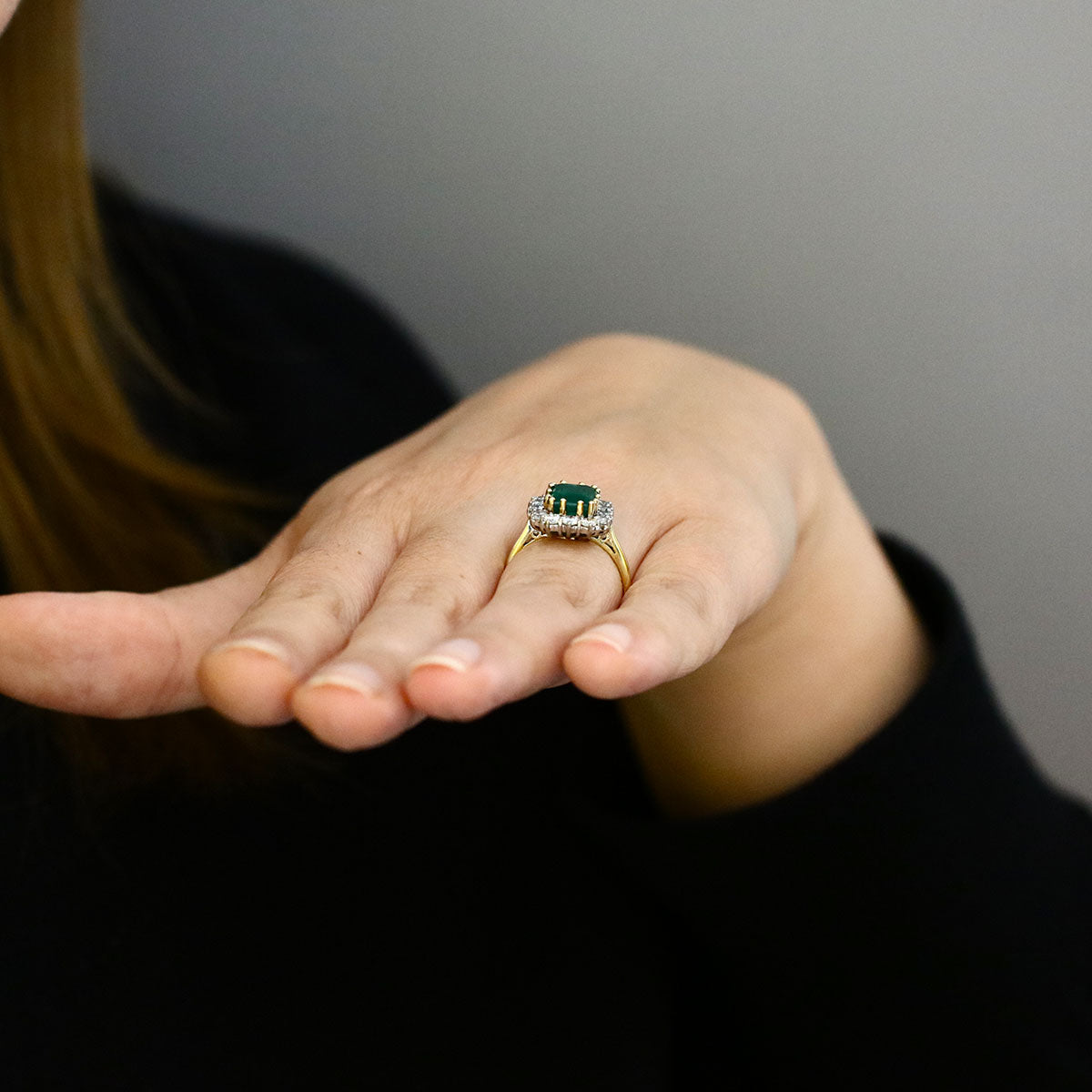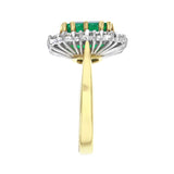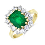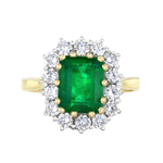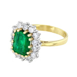 2.23ct Emerald-Cut Emerald and 1.05ct Brilliant-Cut Diamond Cluster Ring | Pre-Loved | 18K Yellow Gold