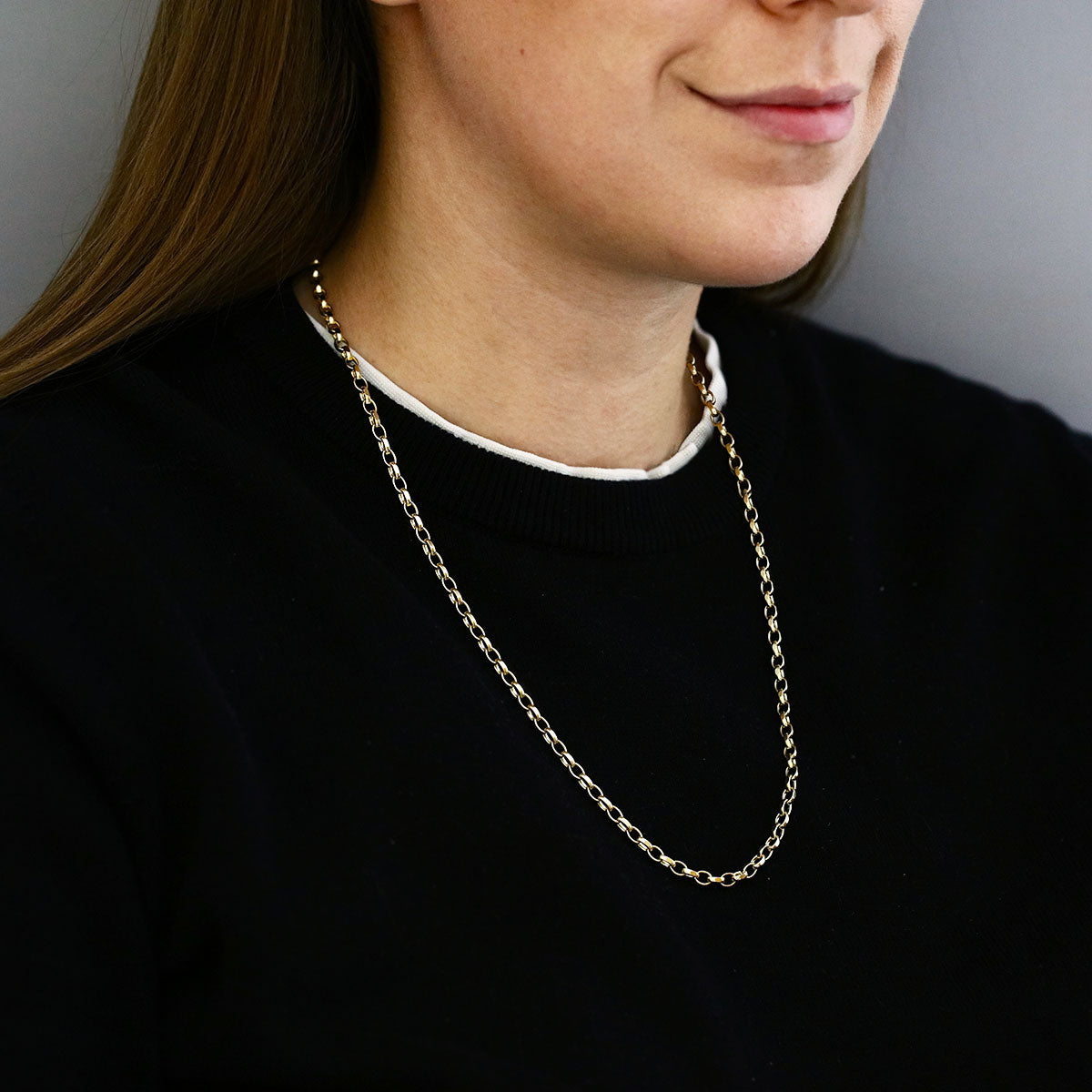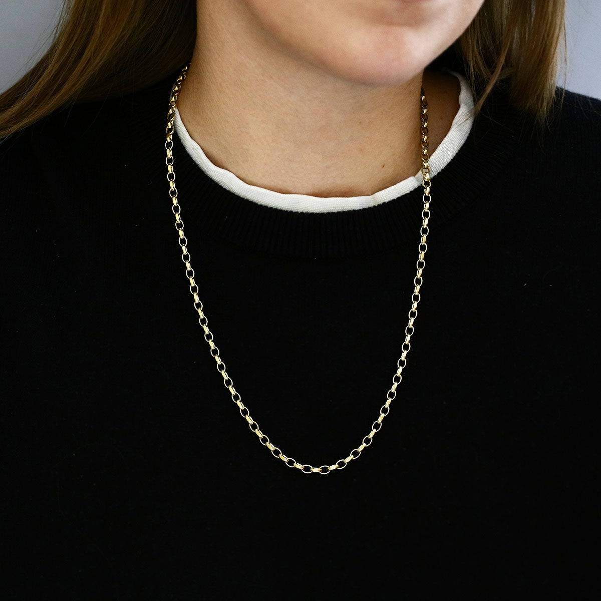 Elevate your jewellery collection with this beautifully crafted 9K yellow gold diamond-cut belcher necklace. Measuring 22" in length and 3.7mm in width, this elegant 20.3 gram chain showcases finely faceted links that reflect the light with a subtle, refined sparkle. The 375 gold stamp is a mark of quality and authenticity, ensuring enduring value and timeless appeal. Finished with a secure clasp, this versatile necklace can be worn alone for understated sophistication or layered effortlessly with other pieces for a modern, stylish look.