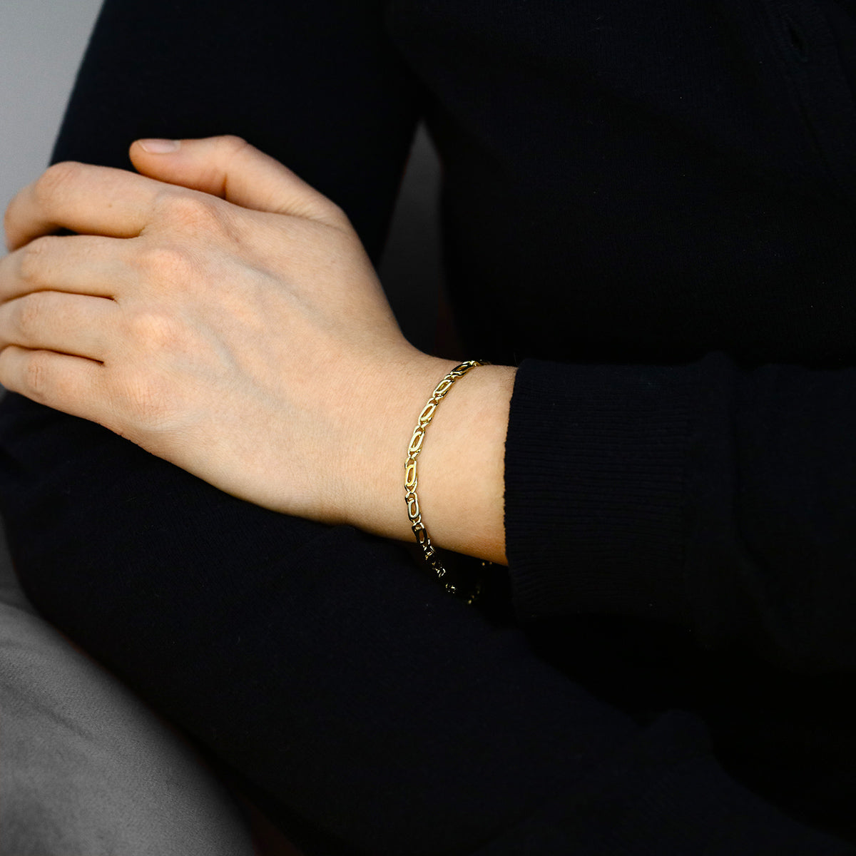 A beautifully crafted piece with enduring appeal, this 7" interlinking fancy link bracelet is made in rich 14K yellow gold and stamped 14K for authenticity. The intricate interwoven links create a refined yet eye-catching design, finished with a secure lobster fastening for comfortable everyday wear.
