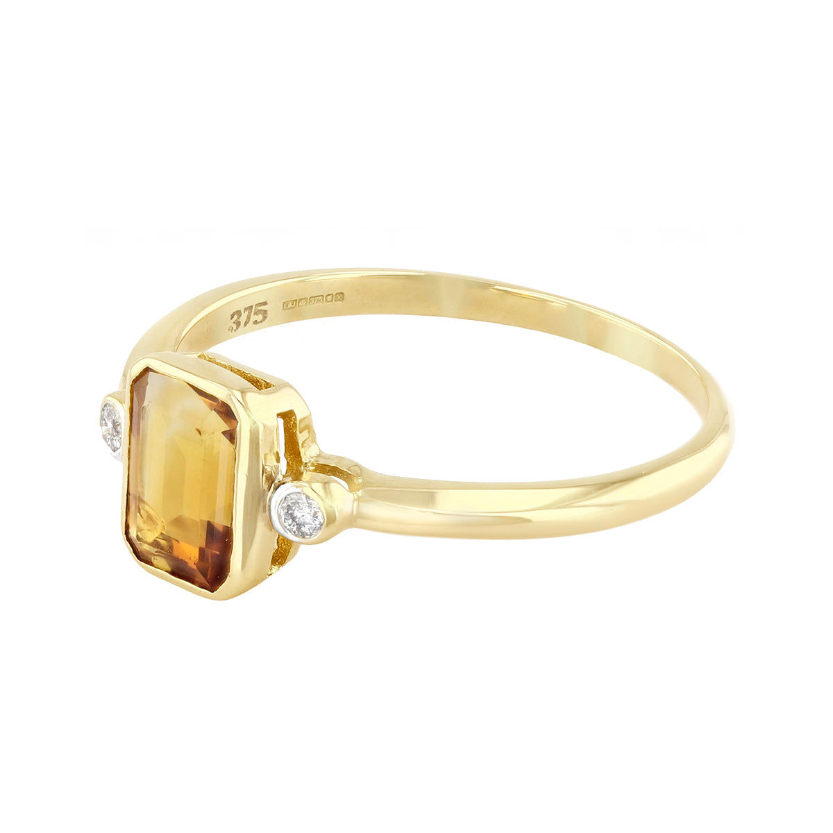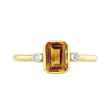7x5 Citrine and 0.03ct Diamond Bezel Set Dress Ring | Pre-Loved | 9K Yellow Gold