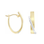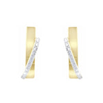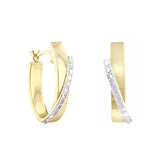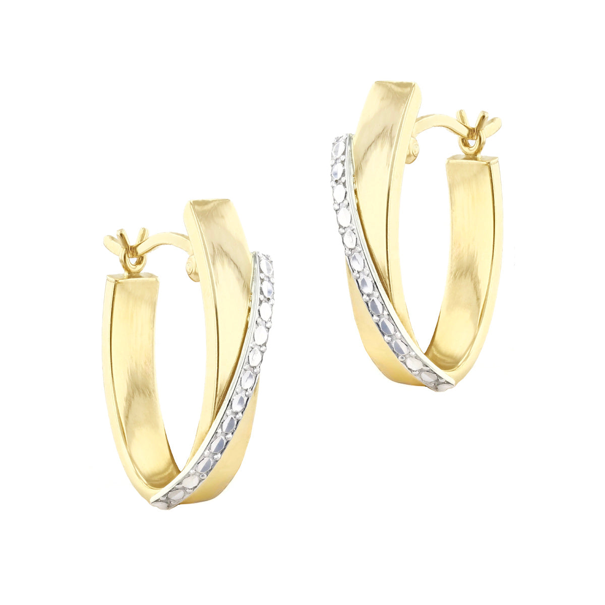 Stamped 375 for 9K yellow gold, these elegant crossover hoop earrings combine the warmth of yellow gold with the sleek brilliance of white gold. The polished yellow gold hoop is enhanced by a diagonal band of patterned-cut white gold, adding texture and a subtle shimmer.