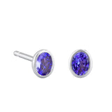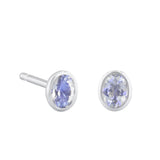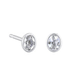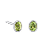 Birthstone Oval Bezel Set Stud Earrings | 9K White Gold