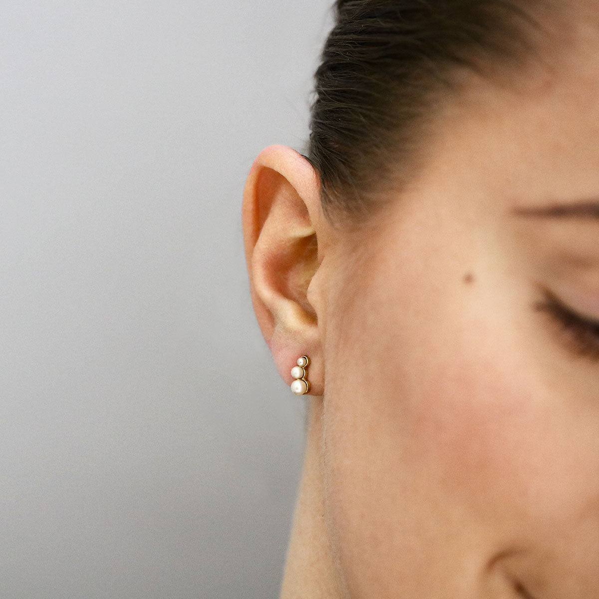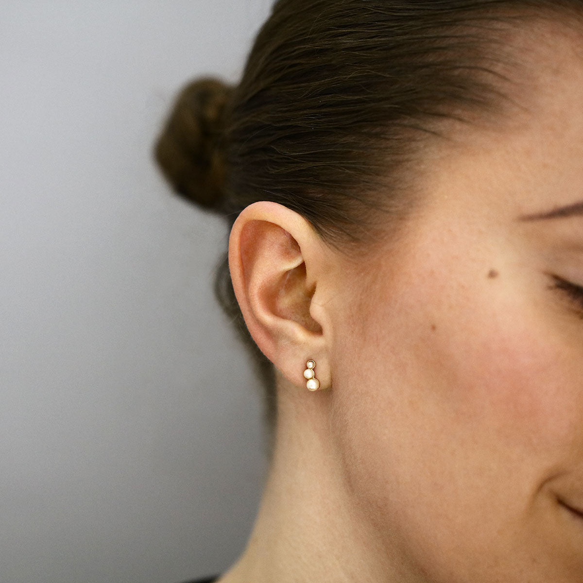 Elevated and effortlessly elegant, these pre-loved pearl drop earrings feature a trio of cultured pearls graduating in size, 2.1mm, 3.2mm, and 3.8mm - creating a gentle, cascading effect. The drop height of approximately 10mm allows them to sit gracefully, catching the light with every movement.
