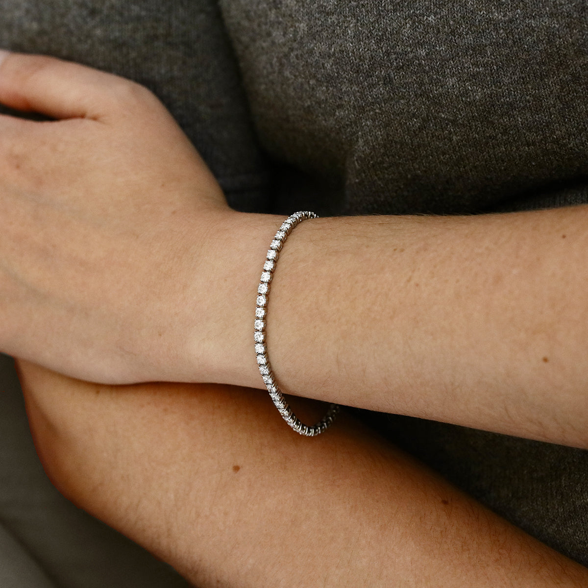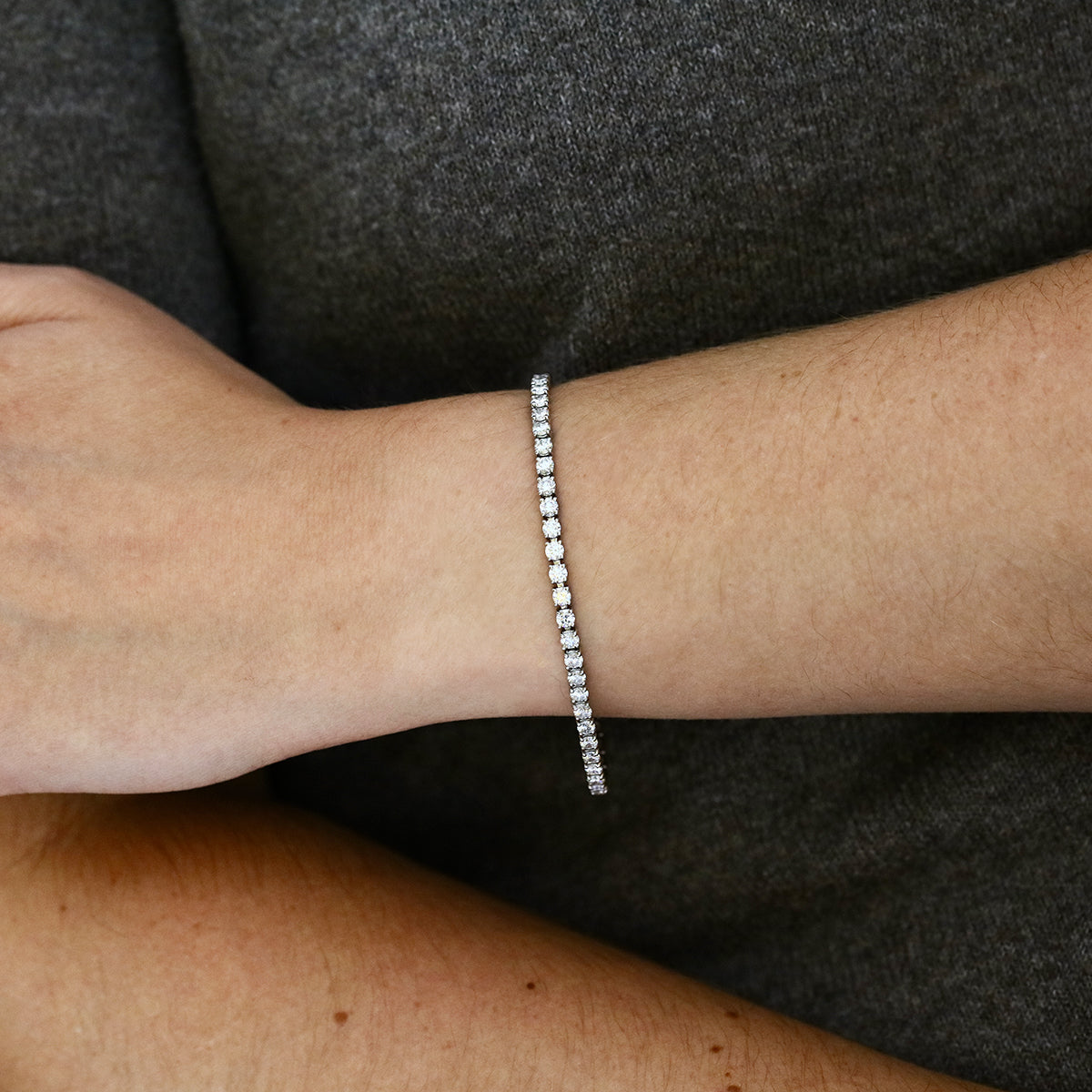 Refined and timeless, this 5ct natural diamond tennis bracelet offers a perfectly balanced silhouette with radiant sparkle. Each round brilliant cut diamond has been hand-selected in G/H colour and SI1 clarity, ensuring exceptional brilliance with understated sophistication.