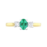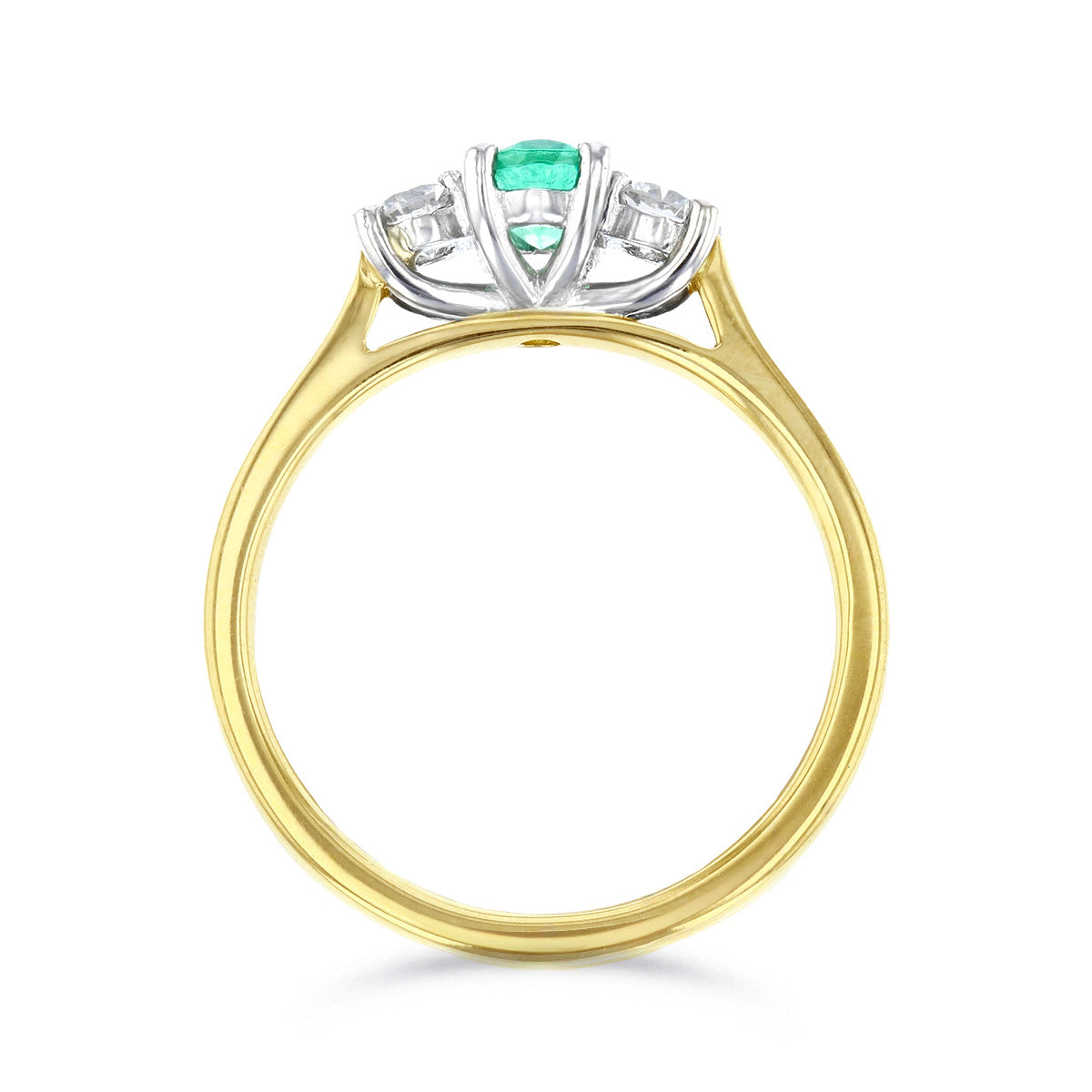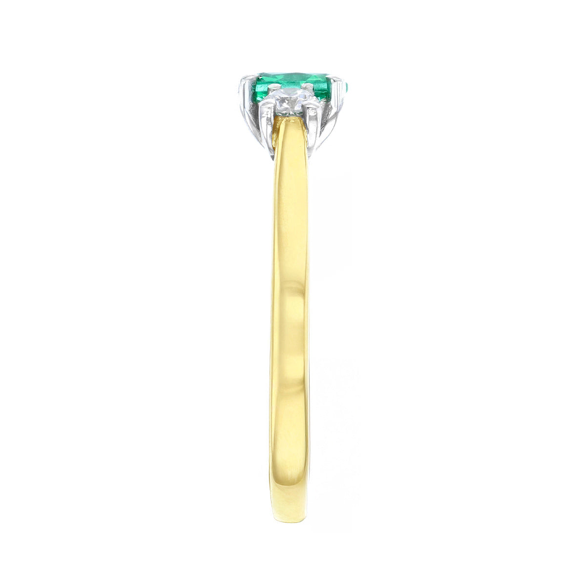 Heirloom Collection 0.40ct Zambian Emerald and 0.20ct Diamond Three Stone Ring | 18K Yellow Gold
