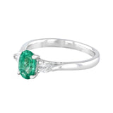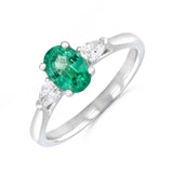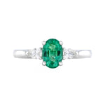 Heirloom Collection 0.73ct Oval Emerald and 0.20ct Pear Cut Diamond Three Stone Ring | Platinum