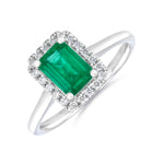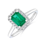 Heirloom Collection 0.76ct Emerald-Cut Emerald and 0.14ct Brilliant Cut Halo Ring | Platinum