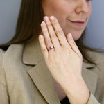 A timeless symbol of elegance, this 1.10ct oval ruby is beautifully complemented by two brilliant-cut diamonds totaling 0.24ct, set with a refined 18K yellow gold band with a contrasting 18K white gold setting for the stones. The diamonds feature H/I colour and SI1/SI2 clarity, adding subtle sparkle that enhances the ruby’s rich, vibrant hue.