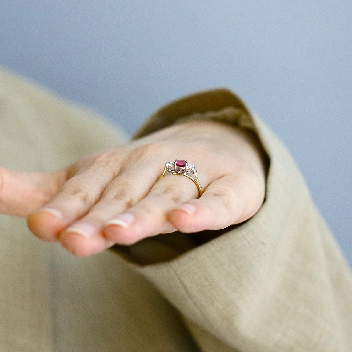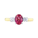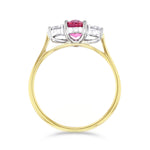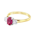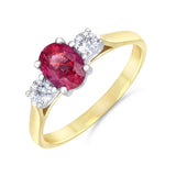 Heirloom Collection 1.10ct Ruby and 0.24ct Diamond Three Stone Ring | 18K Yellow & White