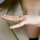 This piece comes with a GSI certificate confirming the ruby has been heat-treated, a common and widely accepted practice in the industry to enhance colour and clarity. The ring is currently a size N, with complimentary resizing available up to three sizes either way to ensure the perfect fit.