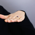 Heirloom Collection 1.12ct Oval Purple Sapphire and 0.29ct Pear Cut Diamond Three Stone Ring | Platinum & 18K Yellow Gold