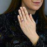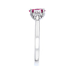 The ruby comes with a GSI certificate, confirming it has been heat-treated, a common and widely accepted industry practice to enhance colour and clarity. The ring is currently size N, with complimentary resizing available up to three sizes either way for a perfect fit.