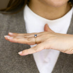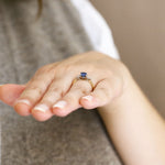 Heirloom Collection 1.29ct Cushion Cut Blue Sapphire & Pear Cut Diamond Three Stone Ring | 18K Yellow Gold with Platinum Setting