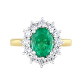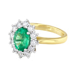 Heirloom Collection 1.96ct Oval Brazilian Emerald and 0.87ct Diamond Cluster Ring | 18K Yellow Gold