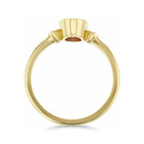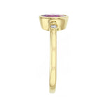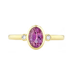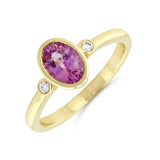 Heirloom Collection Oval Pink Sapphire and 0.05ct Diamond Bezel Set Three Stone Ring | 9K Yellow Gold