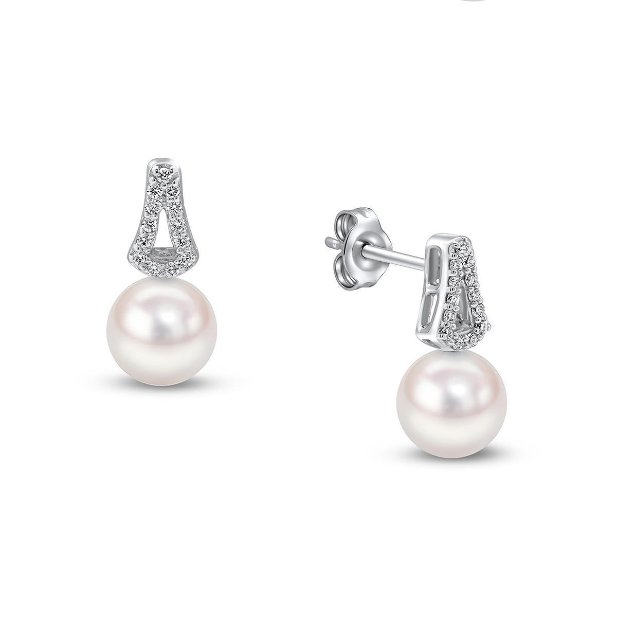 These stunning earrings feature a luminescent 7.5x8 mm Freshwater Pearl of the highest quality and standard. Set in 9K White Gold and completed with 0.13cts of diamonds for some added sparkle!