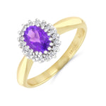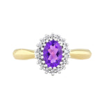 Oval Amethyst and 0.18ct Diamond Cluster Ring | Pre-Loved | 9K Yellow Gold