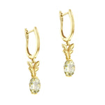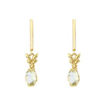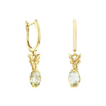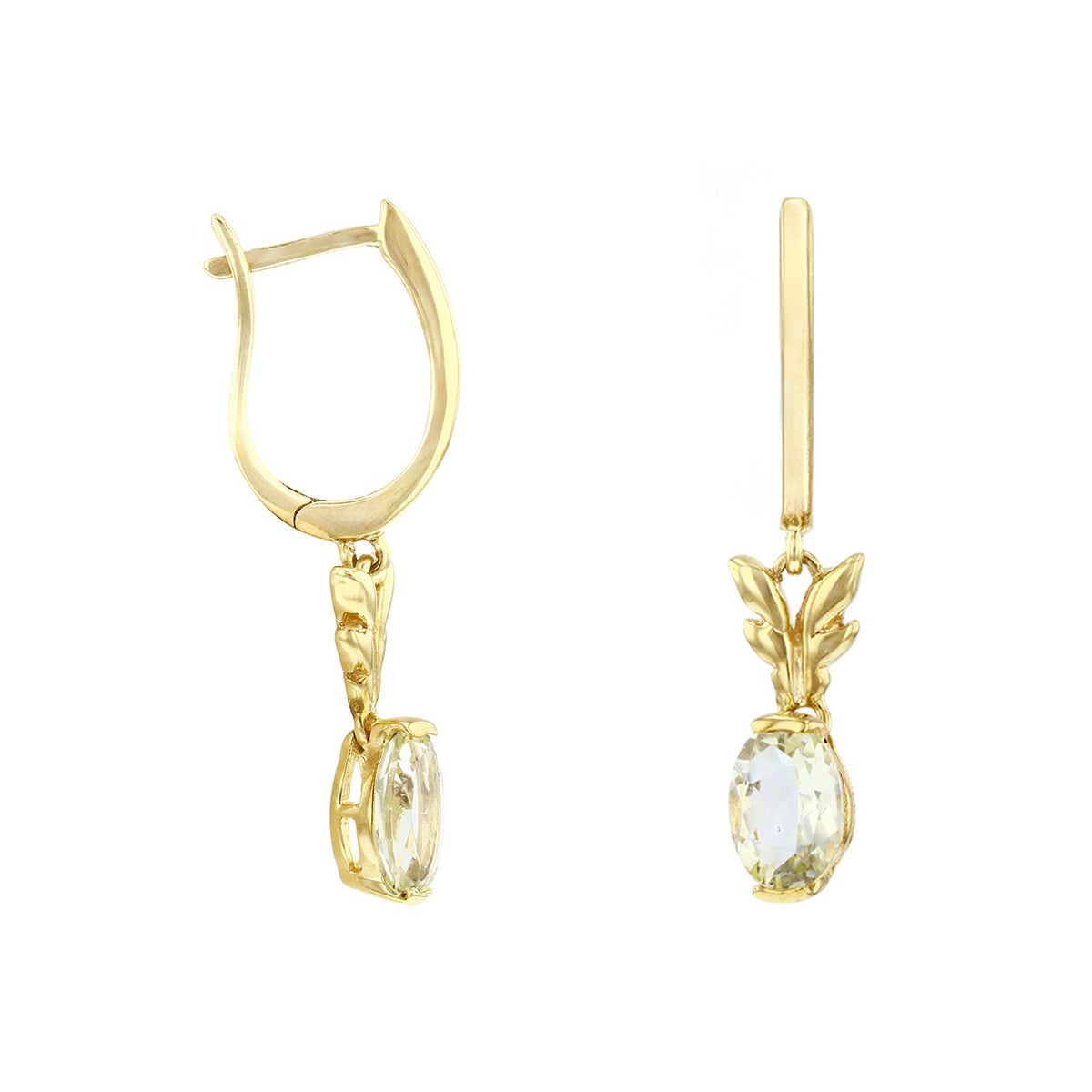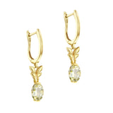 Add a touch of natural elegance with these beautifully crafted citrine drop earrings. Each earring features a 7.7 x 5mm oval-cut citrine, delicately set beneath a sculpted gold leaf design. The stones are securely mounted in a classic claw setting, allowing their soft golden glow to catch the light with every movement.