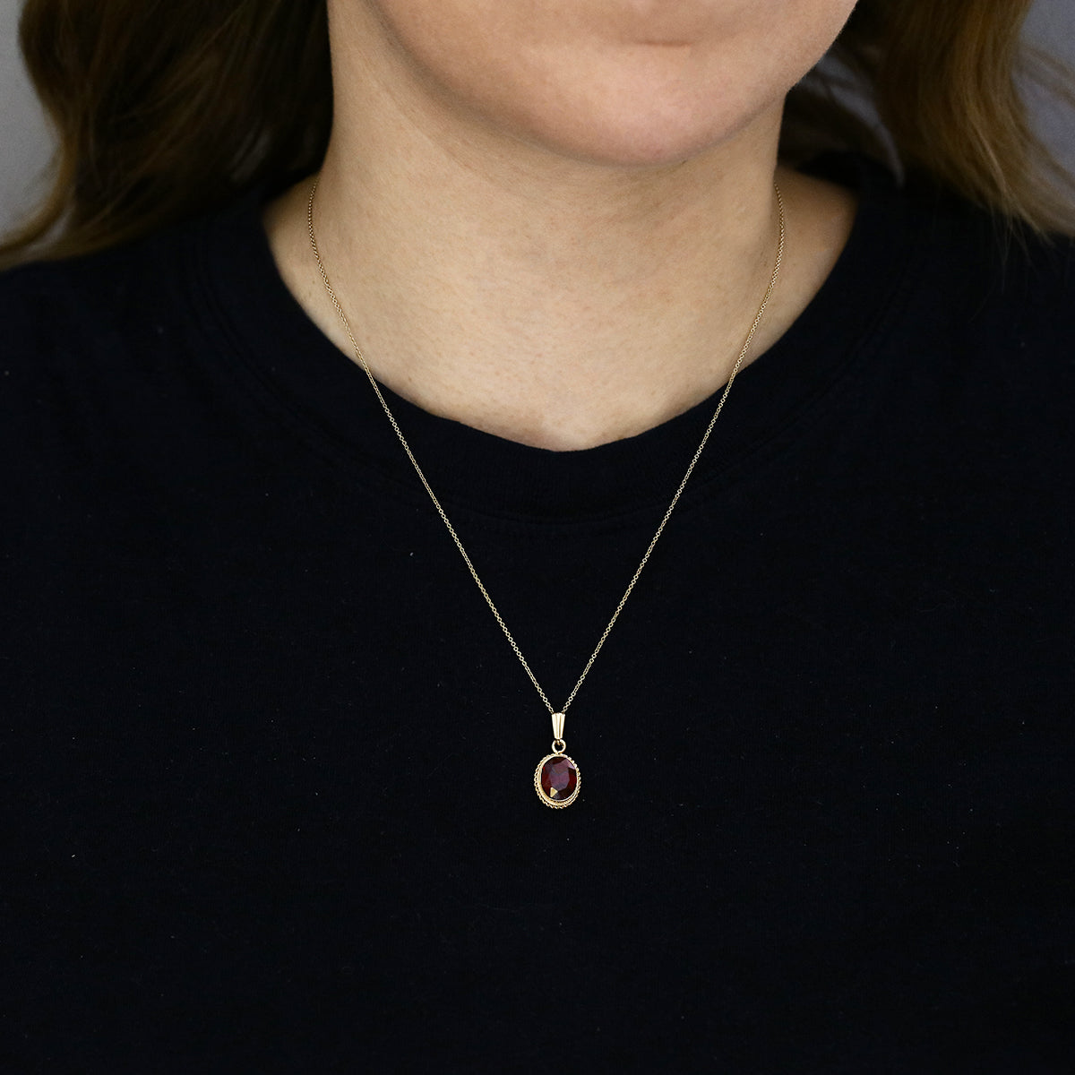 Oval Garnet Necklace (Chain not included) | Pre-Loved | 9K Yellow Gold