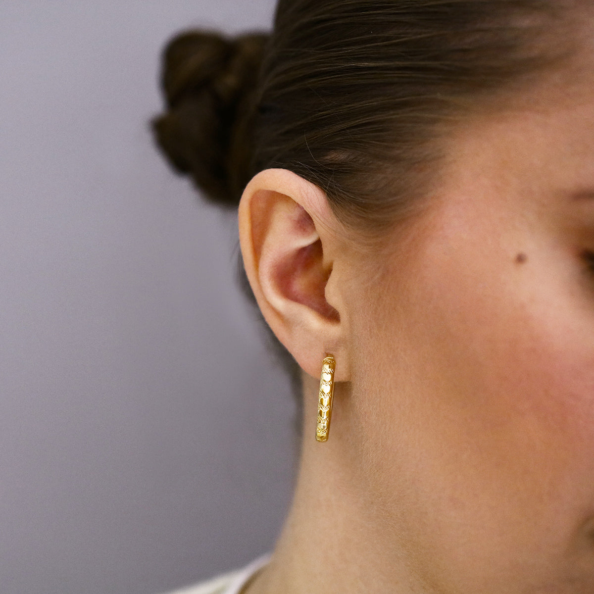 Elegant, feminine, and timeless, these engraved heart oval hoops bring a touch of golden nostalgia to any jewellery collection.