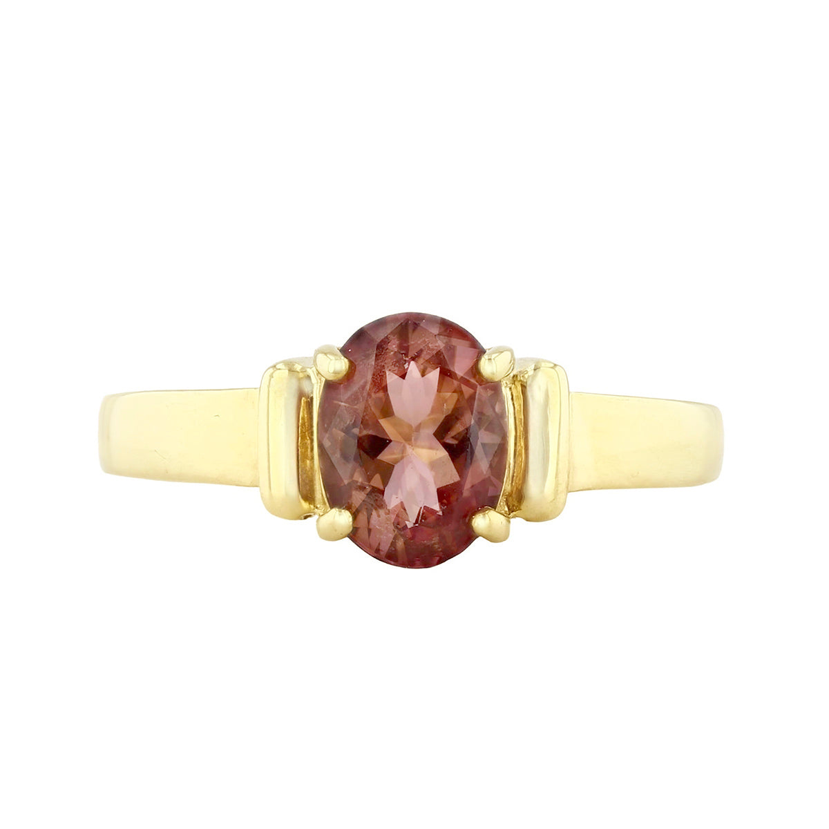 Oval Pink Tourmaline and Cuff Detail Dress Ring | Pre-Loved | 9K Yellow Gold