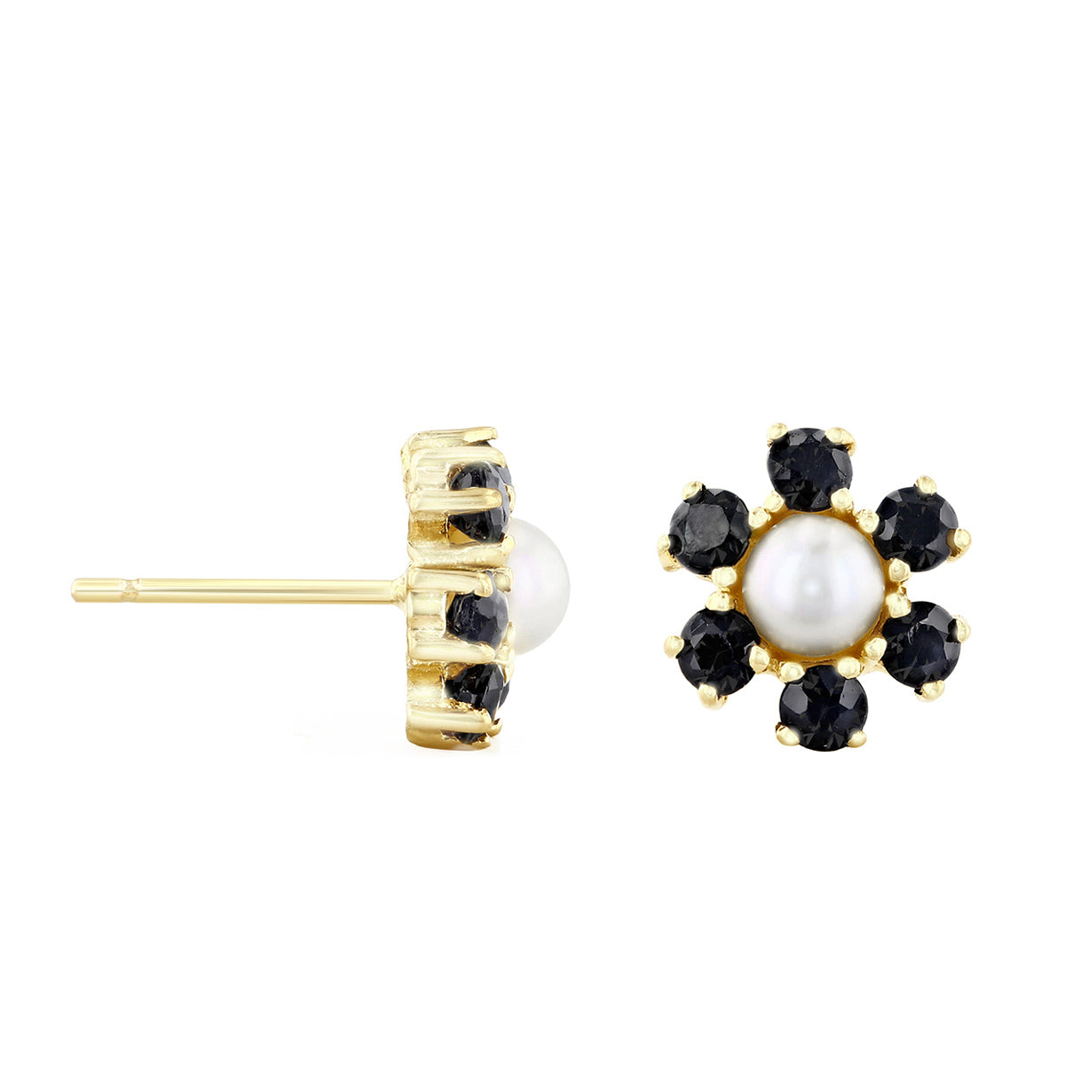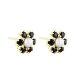 Pearl and Sapphire Flower Design Earrings | Pre-Loved | 9K Yellow Gold