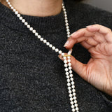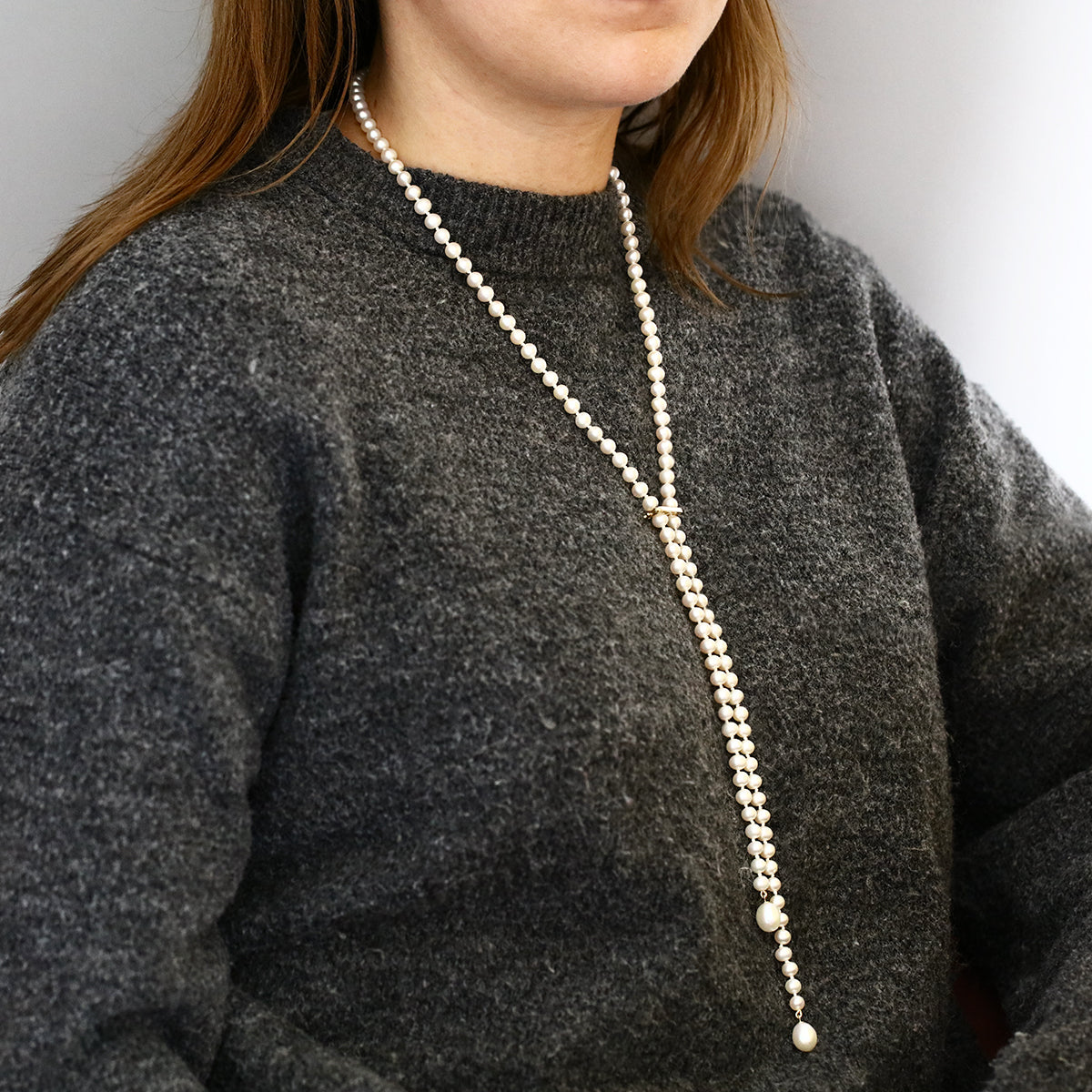 Designed with a refined shortener clasp, the necklace can be styled in multiple ways, worn long and fluid, doubled for a layered look, or looped into a graceful Y-shape lariat. The clasp allows endless creativity, making this piece as adaptable as it is timeless.