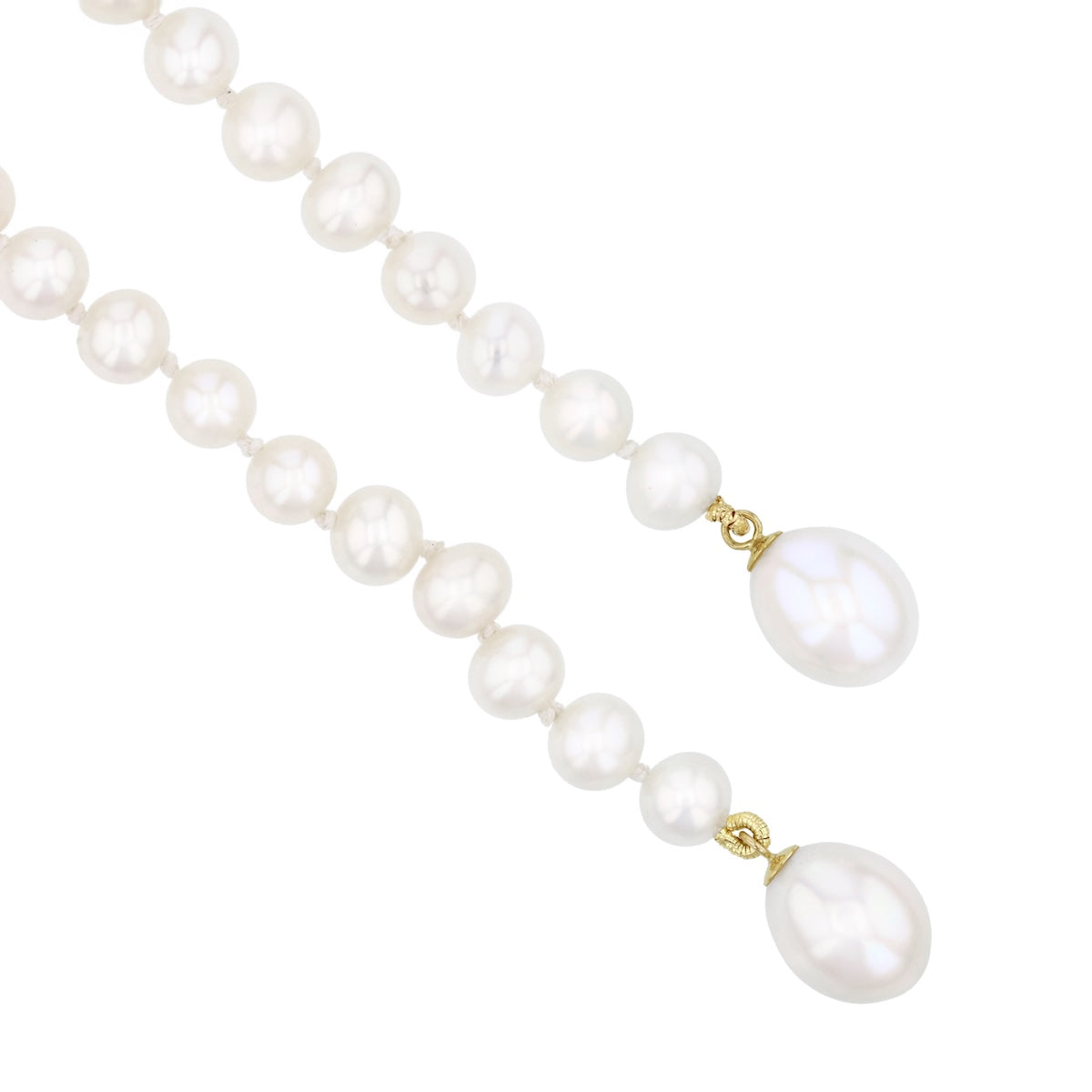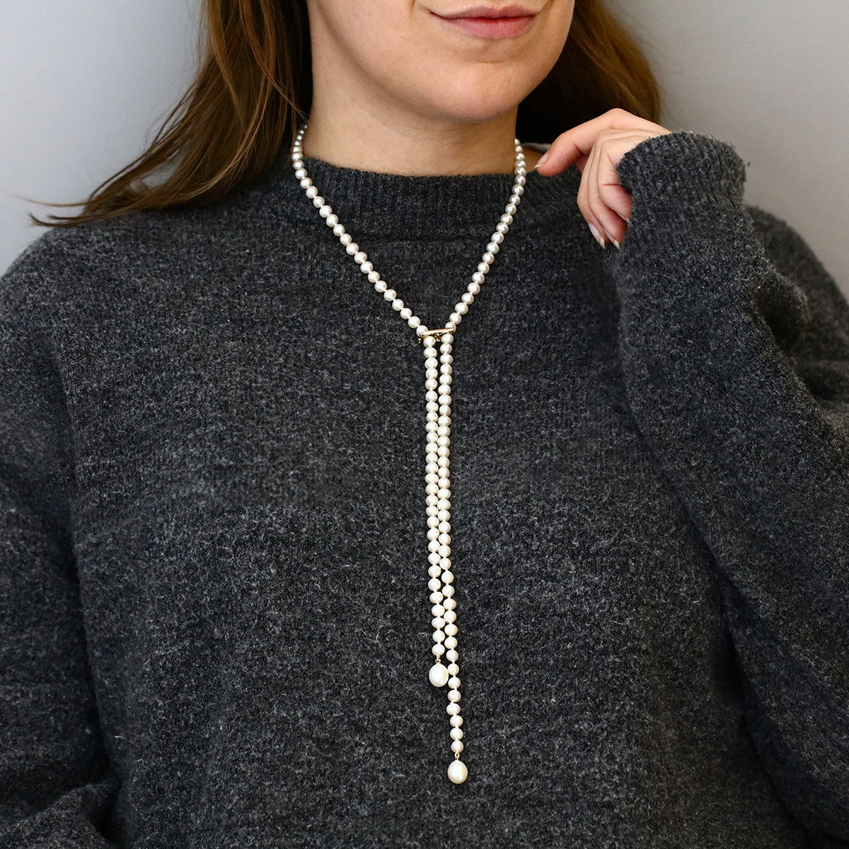 Pearlessence Collection 32" Cultured 6–6.5mm River Pearl Lariat Necklace with Shortener Clasp | 9K Yellow Gold