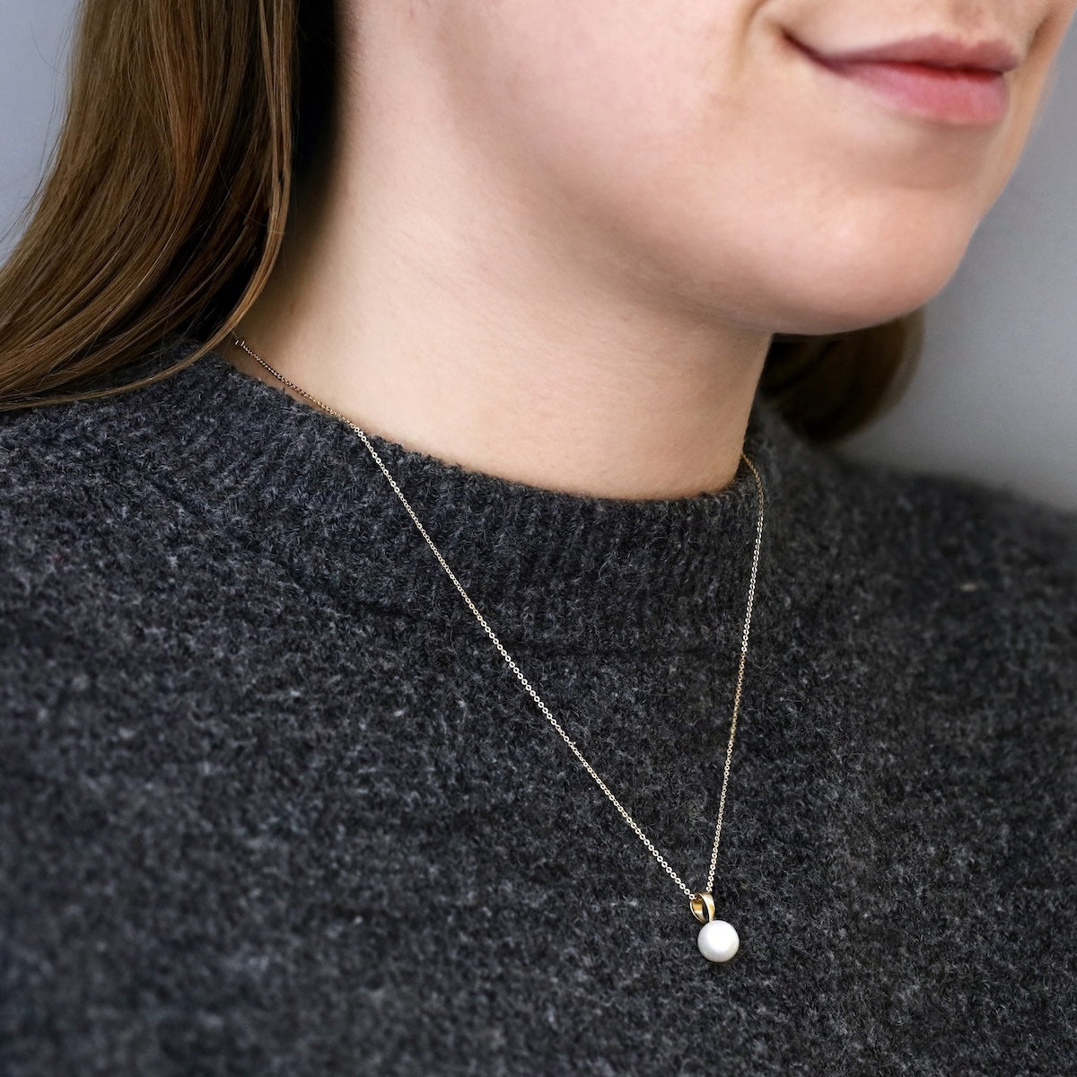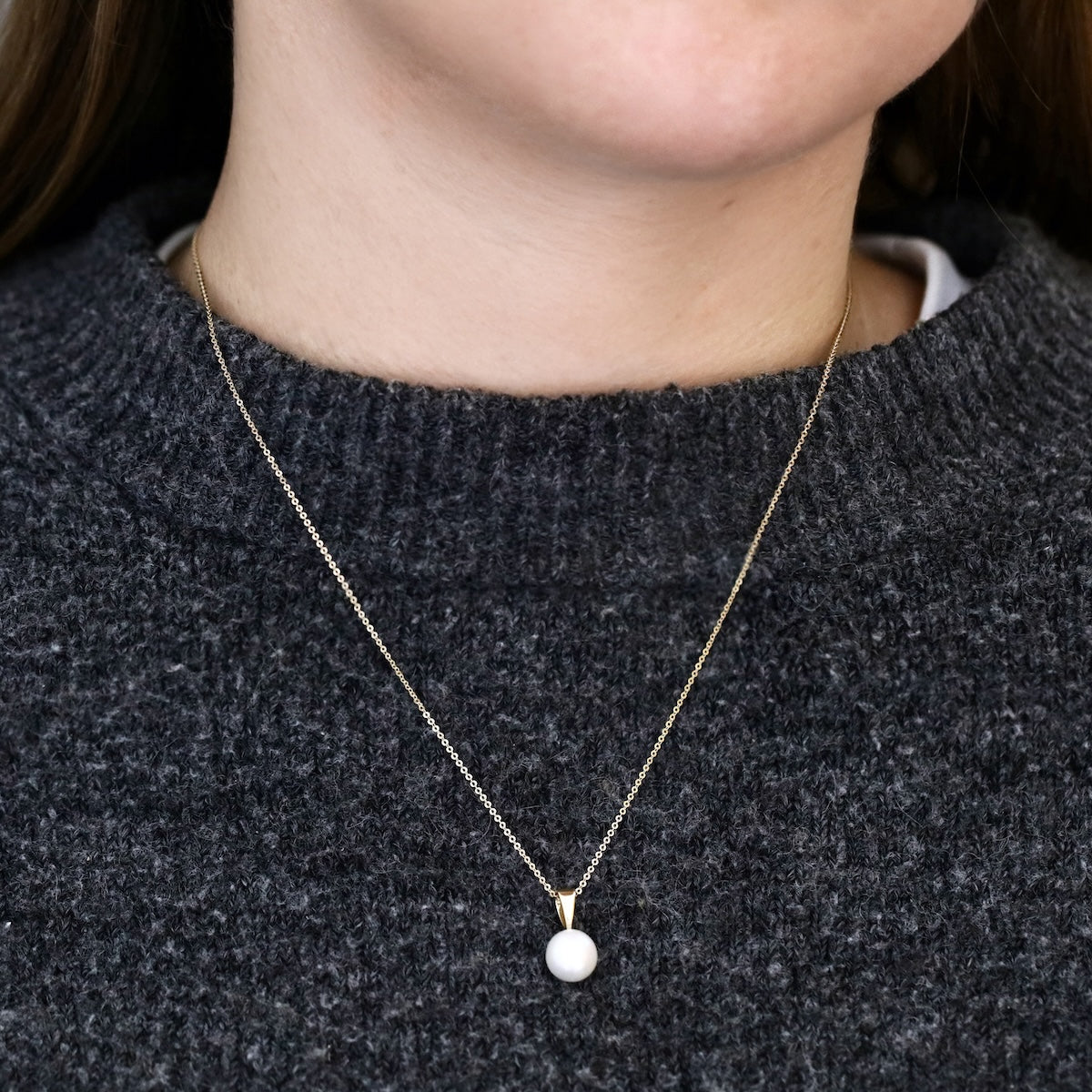 Elegant and timeless, this necklace features a luminous 8–8.5mm white cultured river pearl, celebrated for its radiant lustre and smooth, round shape. Suspended from a refined 9K yellow gold bale, the pearl takes centre stage, highlighting its natural beauty with understated sophistication.