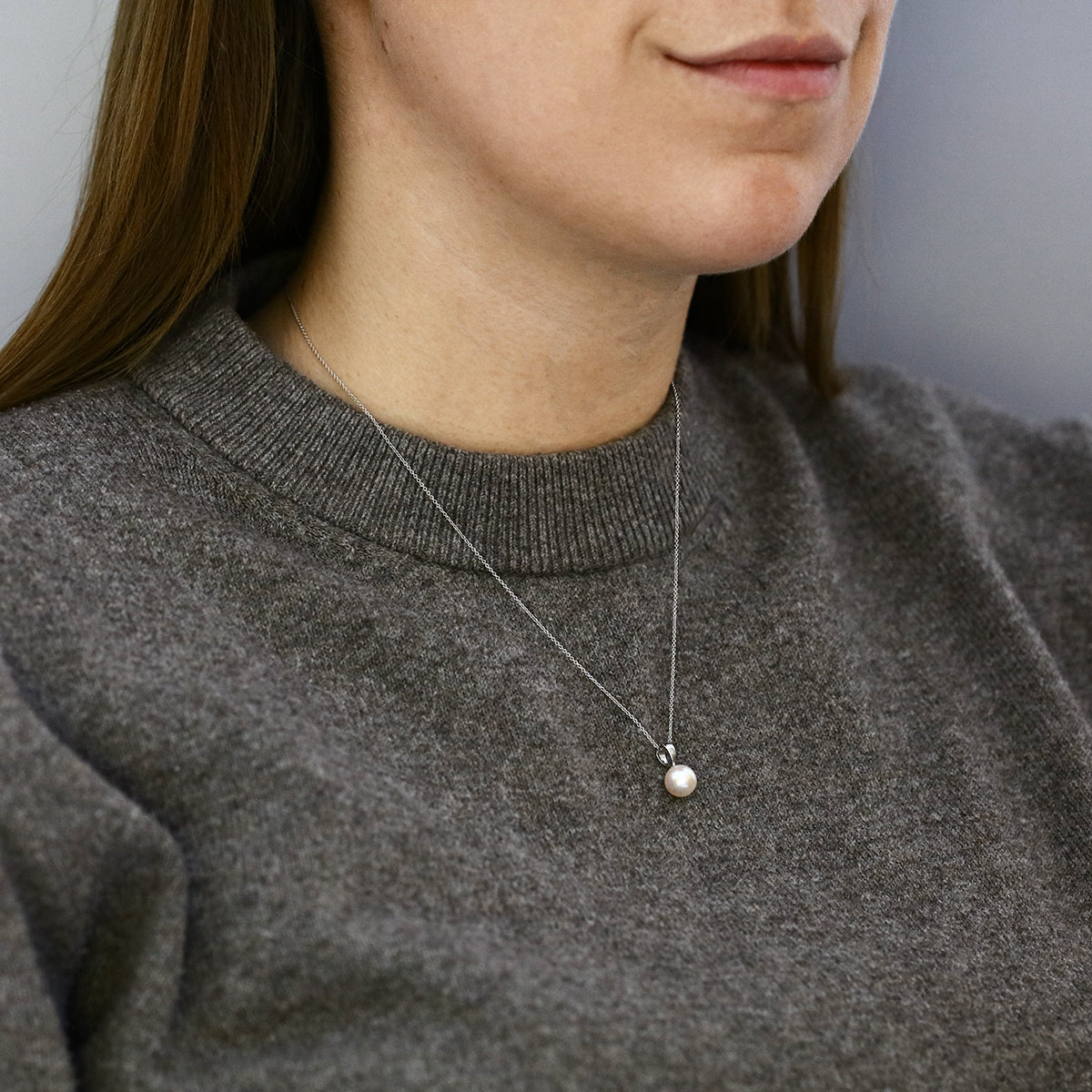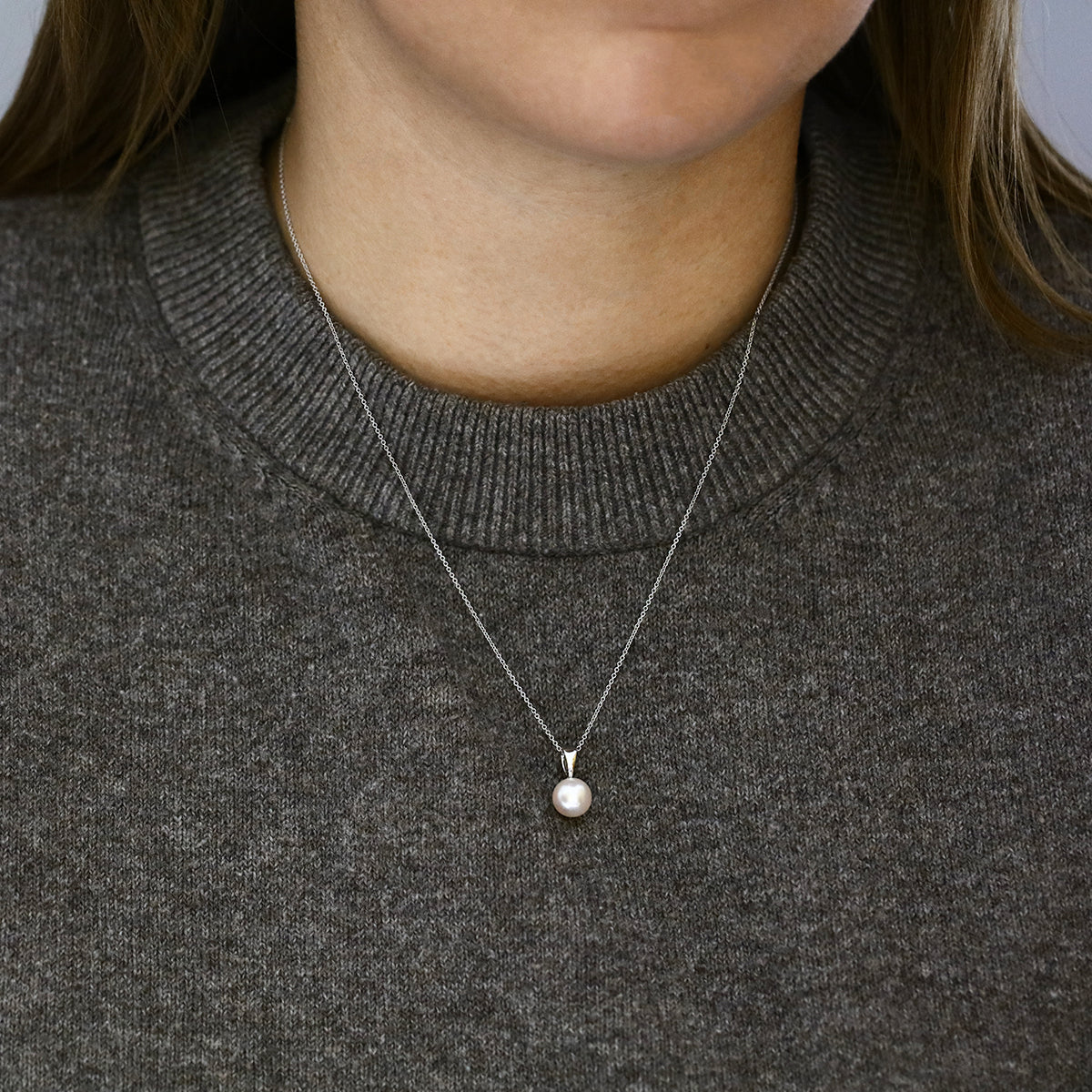 Timeless in design, this necklace features a luminous 8–8.5mm white Akoya pearl, celebrated for its exceptional lustre and perfectly round shape. Set on a sleek 18K white gold bale, the pearl takes centre stage, showcasing its natural beauty with subtle sophistication.