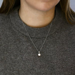 Hanging from an 18" 18K white gold chain, the pendant rests gracefully at the collarbone. Its versatile design makes it equally suited for everyday refinement or special occasion elegance.