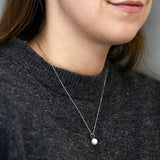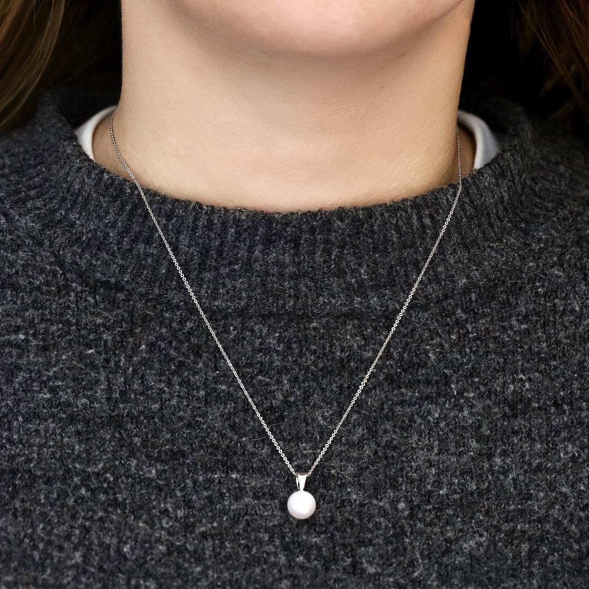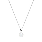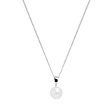 Elegant and timeless, this necklace features a luminous 8–8.5mm white cultured river pearl, celebrated for its radiant lustre and smooth, round shape. Suspended from a refined 9K white gold bale, the pearl takes centre stage, highlighting its natural beauty with understated sophistication.