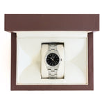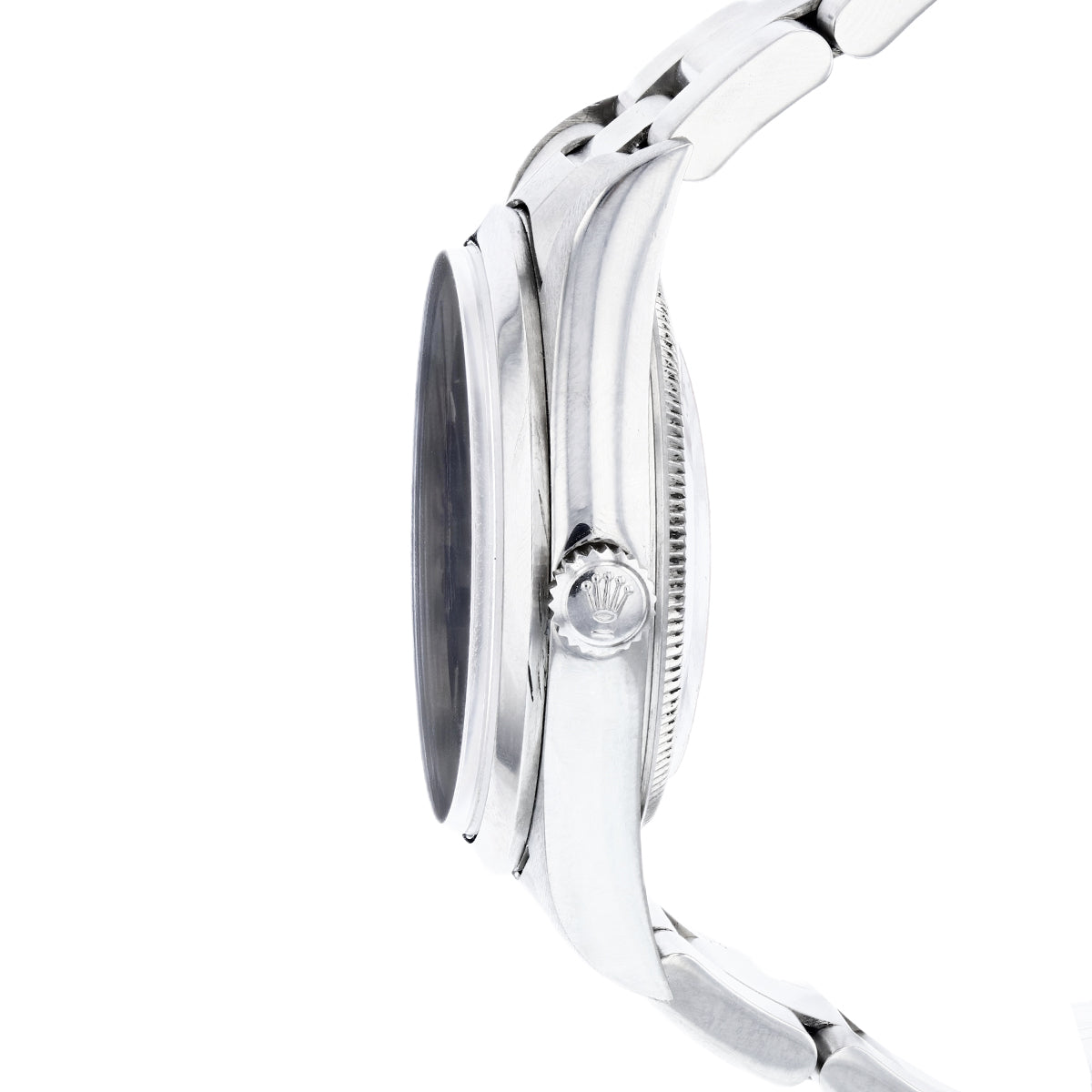 This Rolex Air-King 34 is crafted in Oystersteel and features a black dial with applied index and a smooth bezel. This watch is fitted to an Oyster bracelet with a folding Oysterclasp.