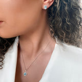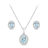 Rosa Mer Aquamarine and Diamond Halo Pendant & Earrings Set